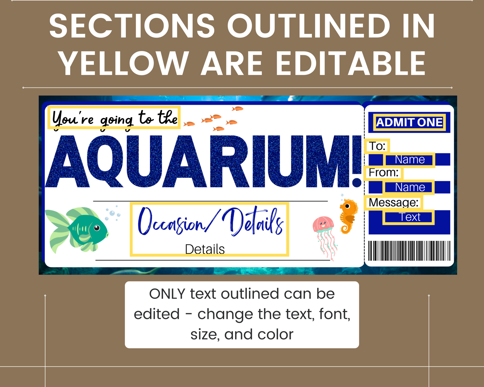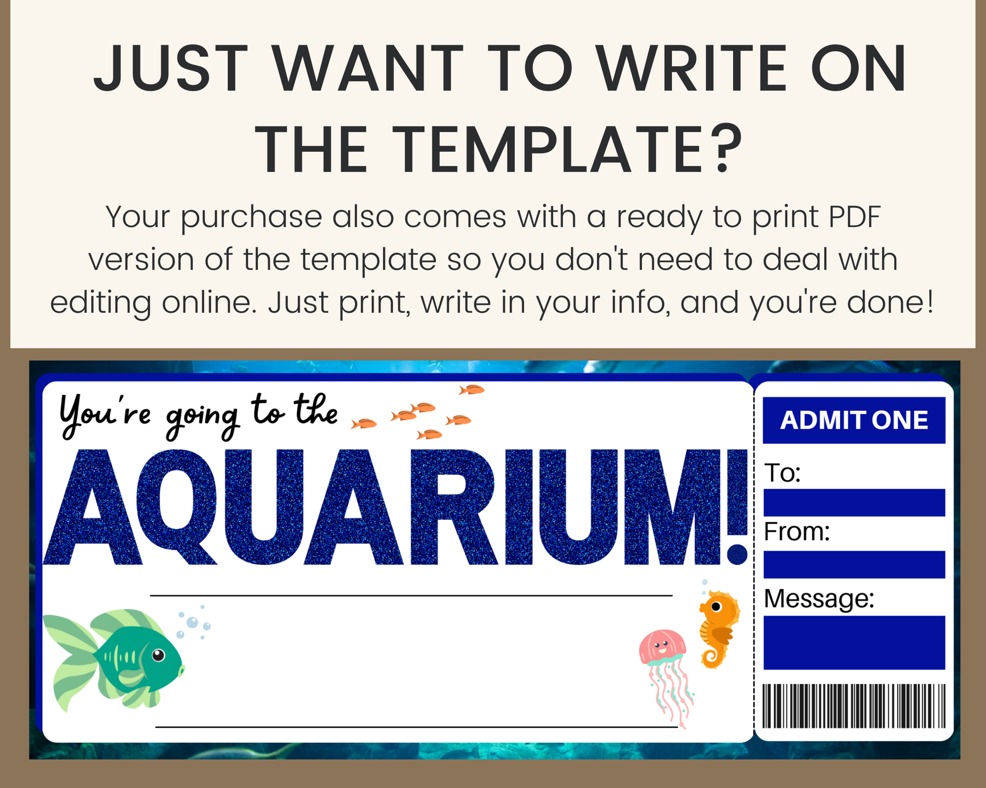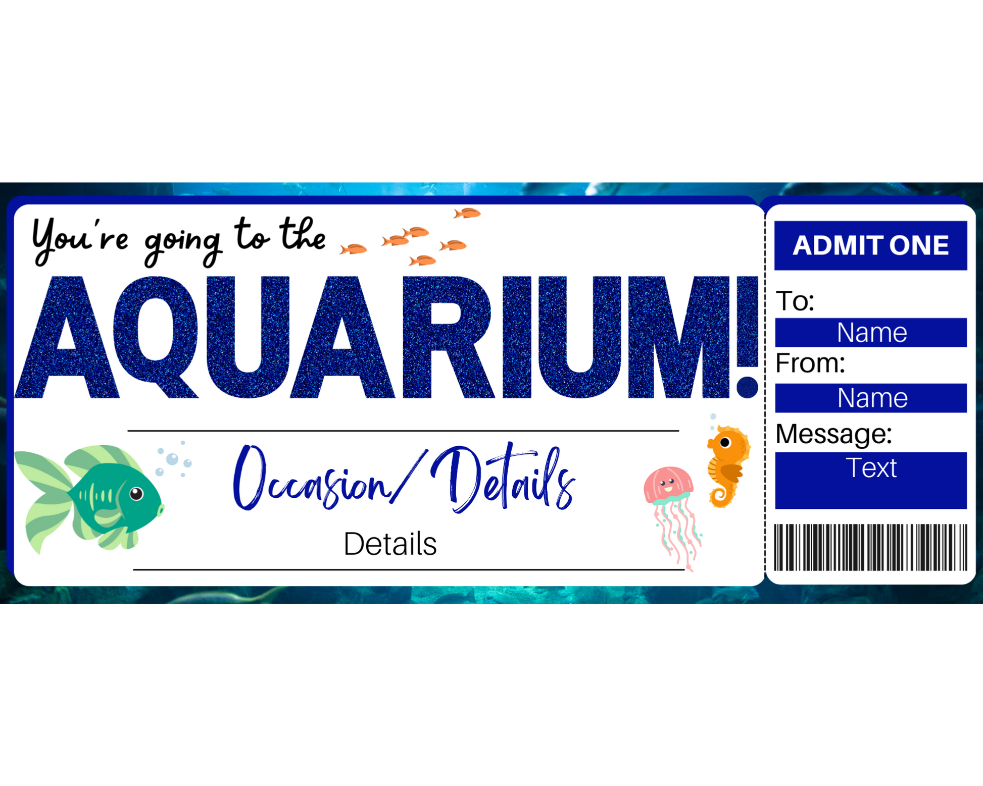 Aquarium gift certificate template. The perfect way to surprise someone with a trip to the aquarium for any occasion!