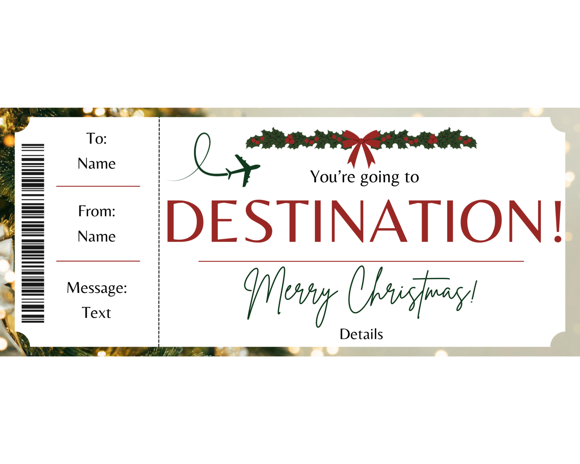 Christmas boarding pass template. The perfect way to surprise someone with a trip for Christmas!