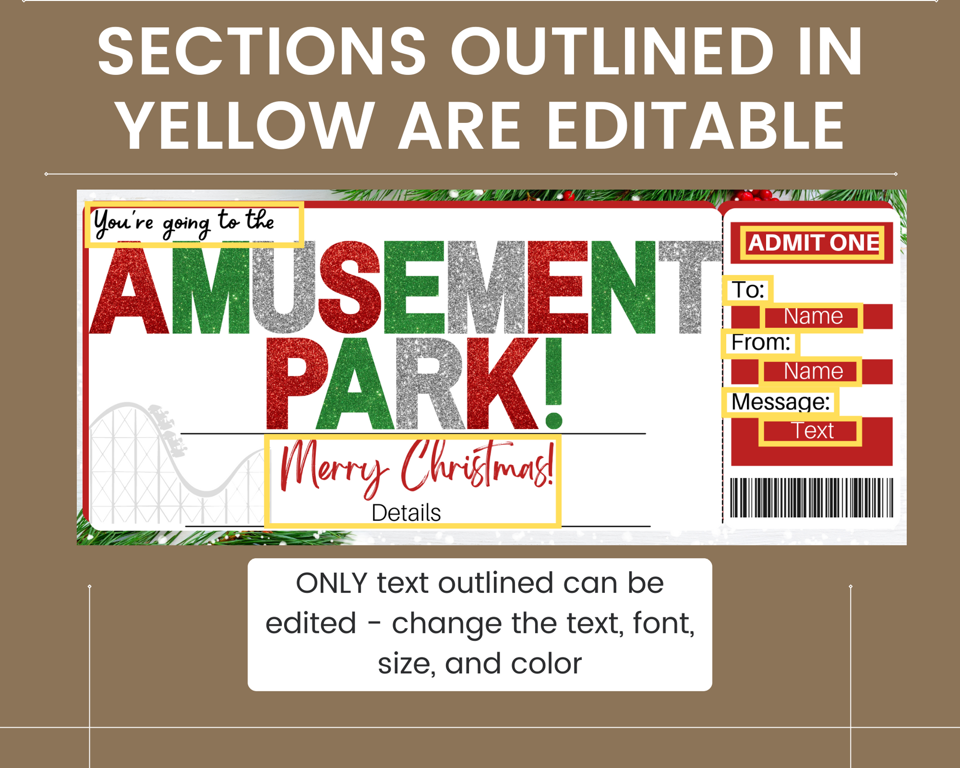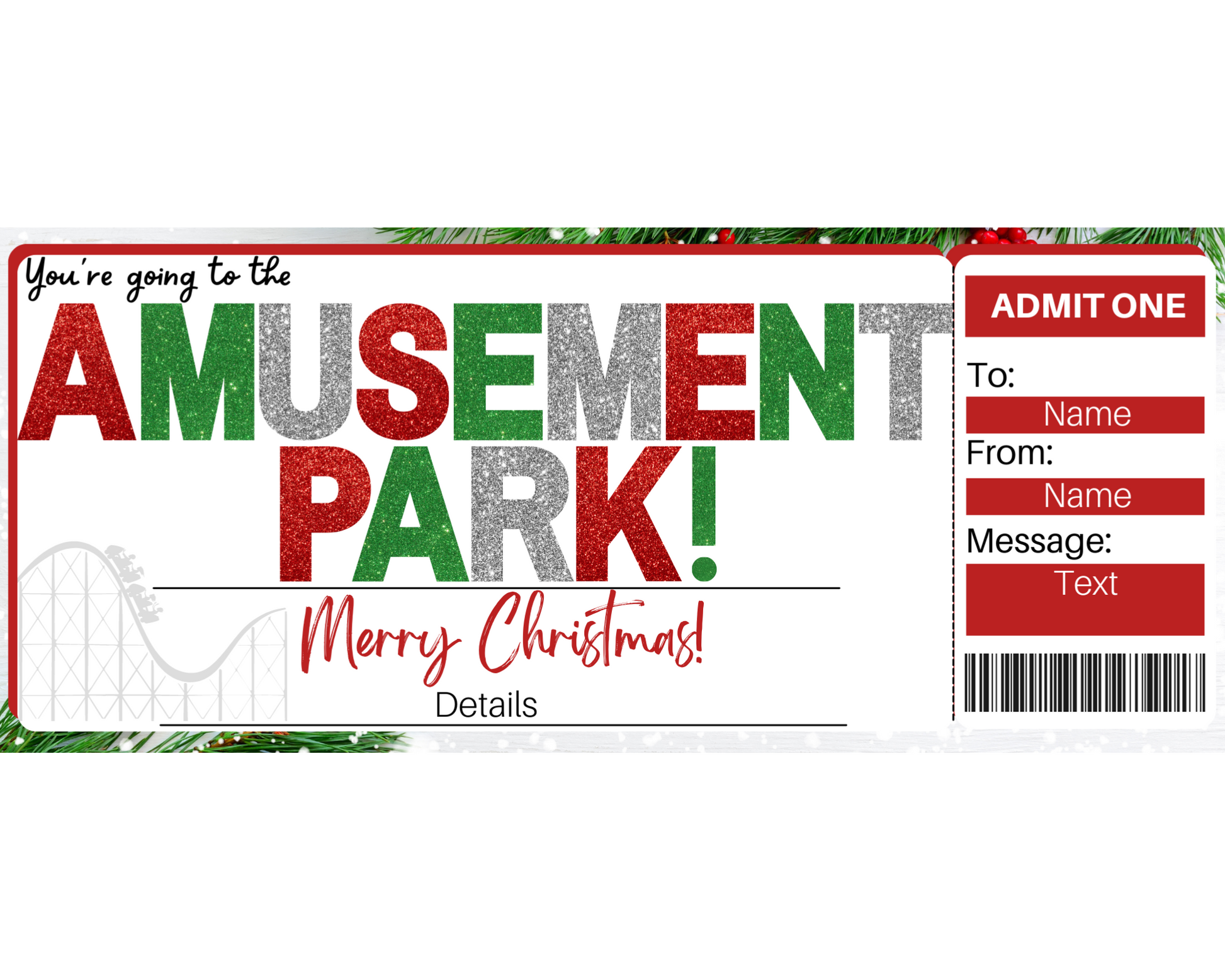 Christmas amusement park gift certificate. The perfect way to surprise someone with a trip to the amusement park for Christmas!