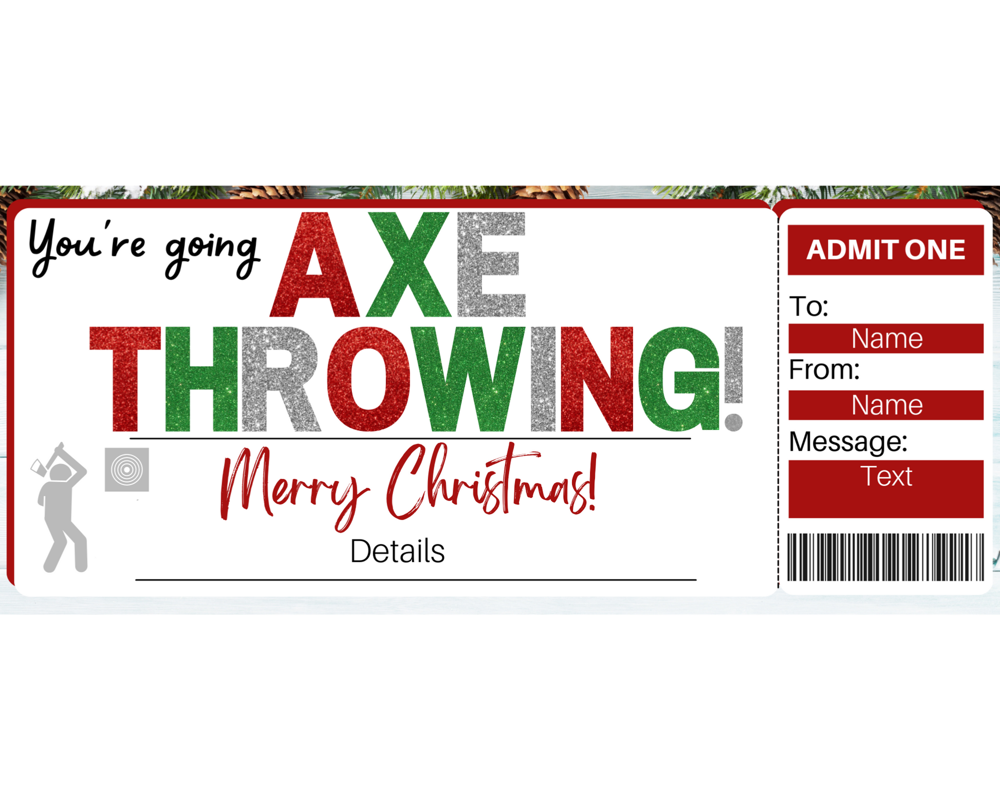 Christmas axe throwing gift certificate. The perfect way to surprise someone with an axe throwing game for Christmas!