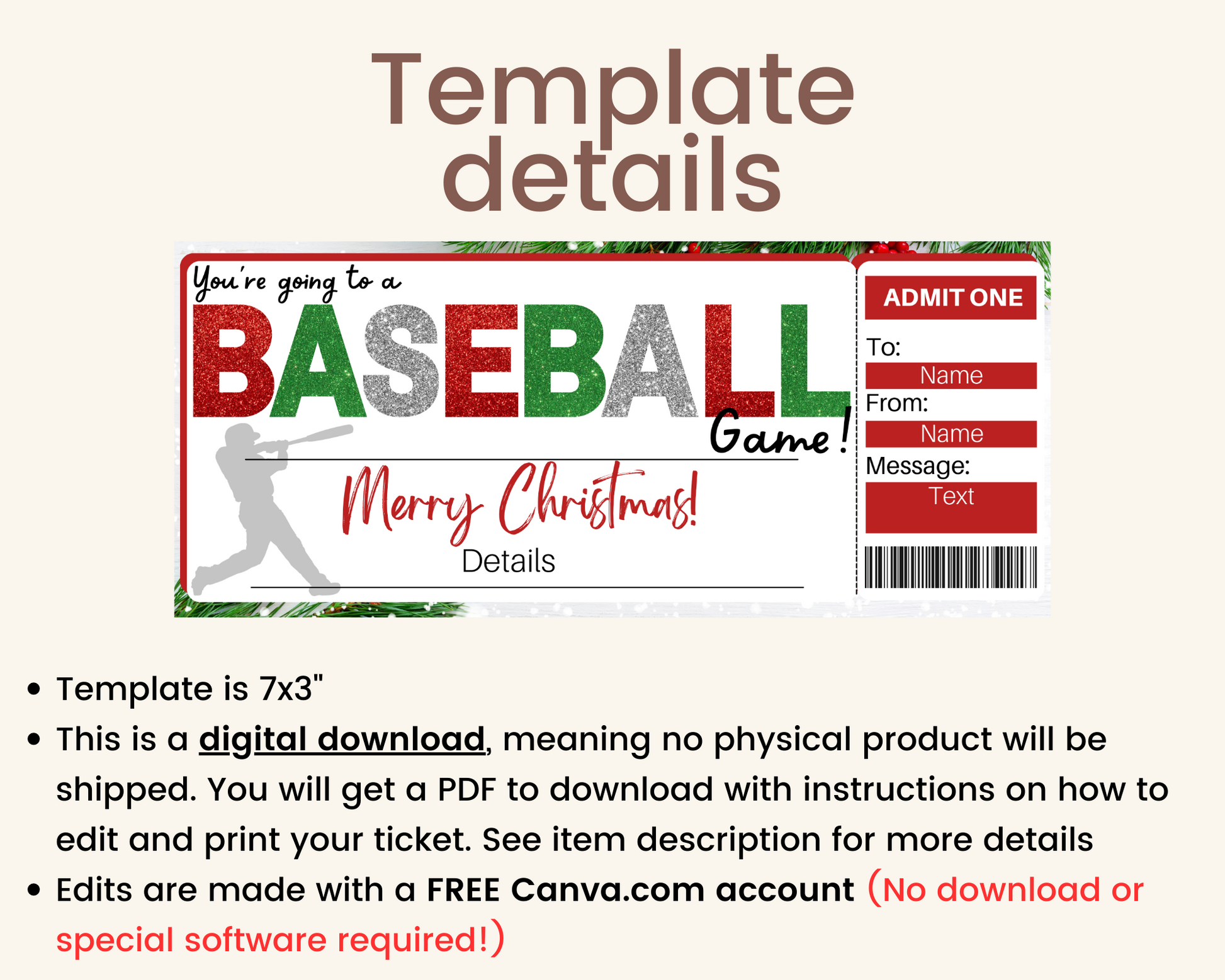 Christmas Baseball Game Gift Ticket