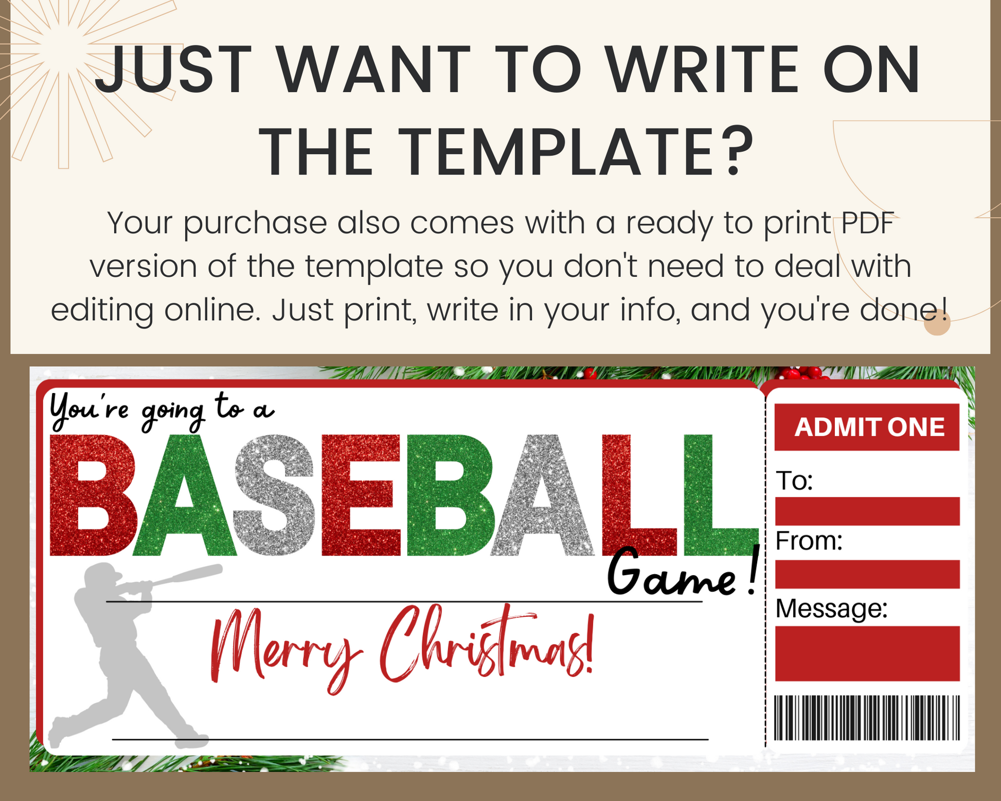 Christmas baseball game gift template. The perfect way to surprise someone with baseball game tickets for Christmas!