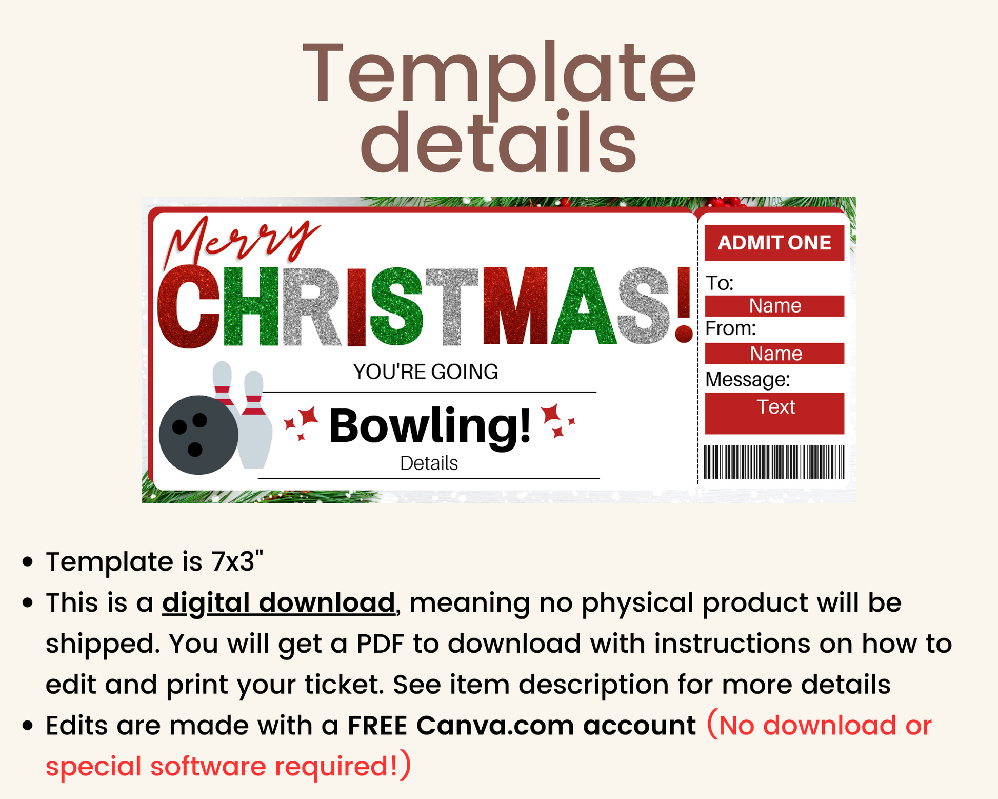 Christmas Bowling Gift Ticket Template