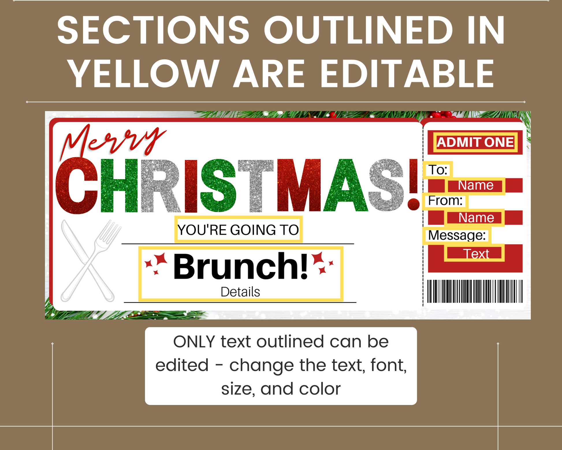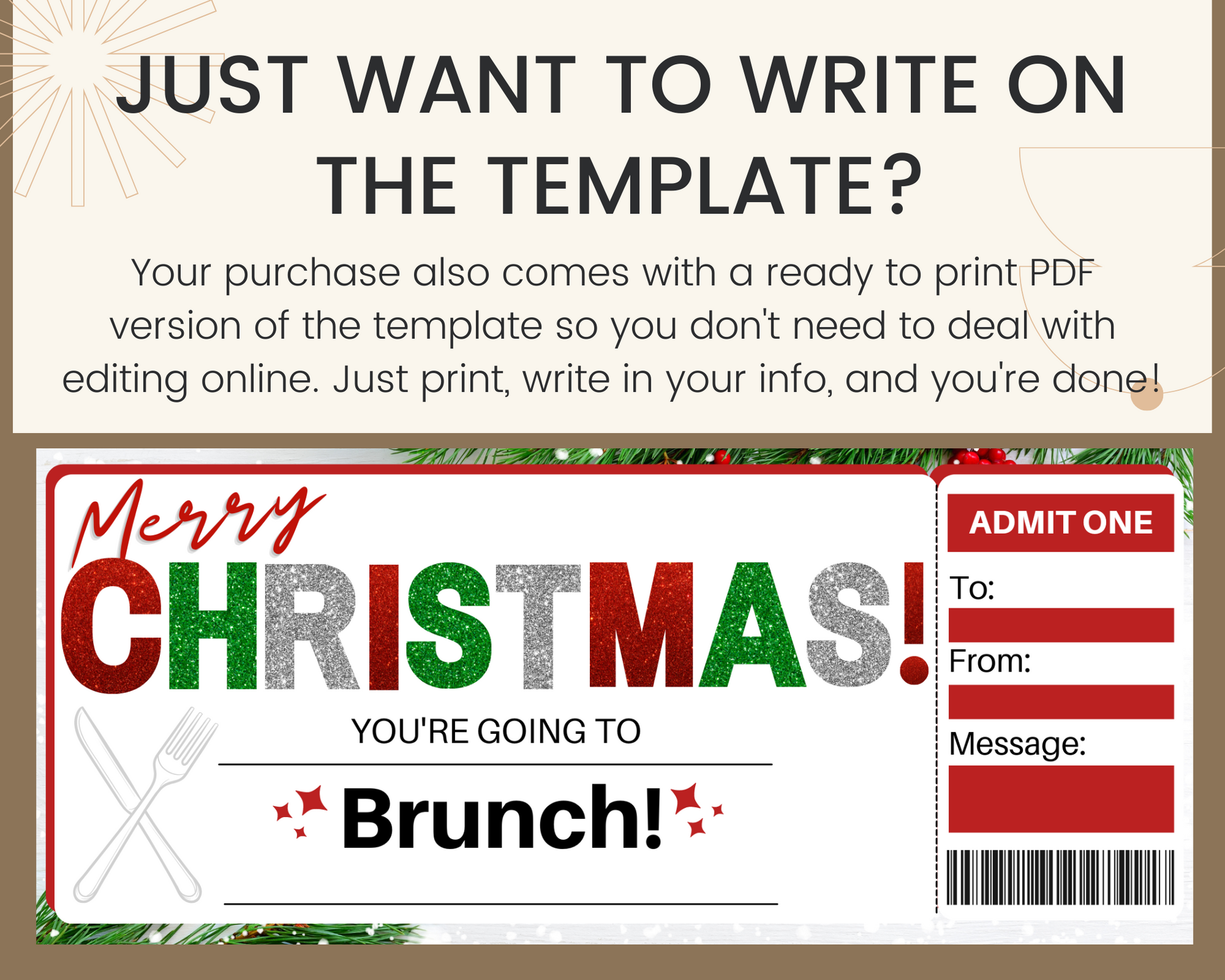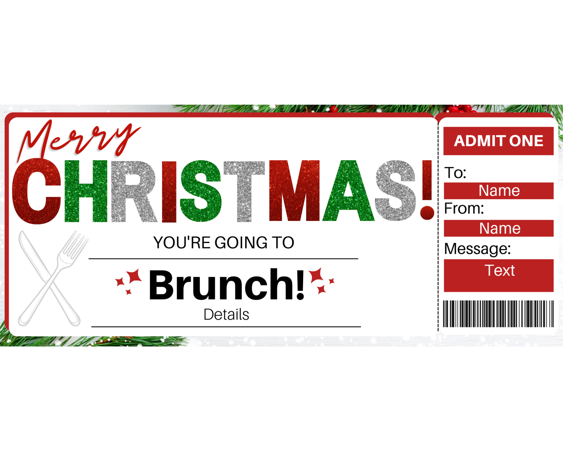 Christmas brunch gift certificate template. The perfect way to surprise someone with brunch reservations for Christmas!