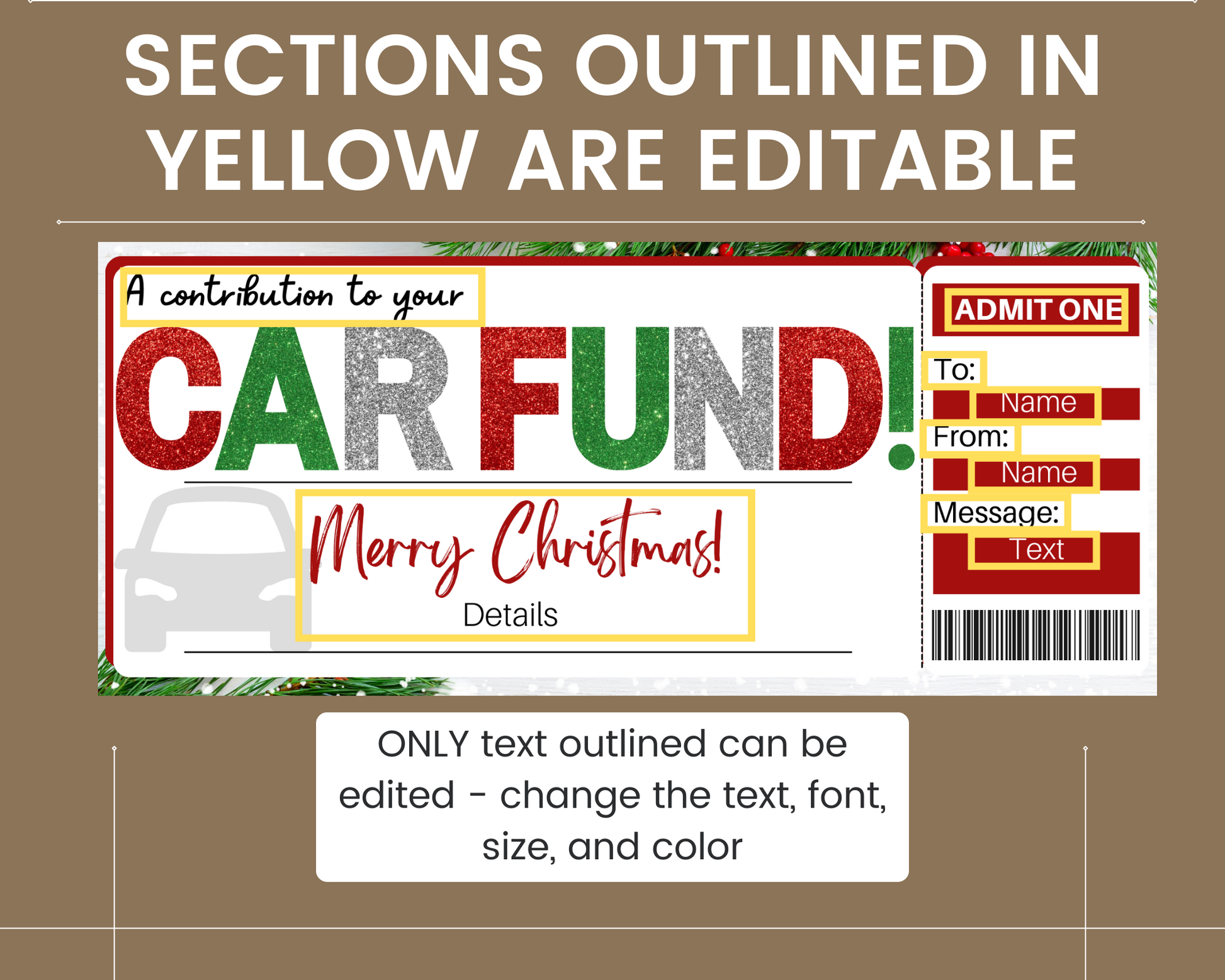 -Editable text is outlined in a yellow rectangle in the listing images. You can change the font, size of the font, colors, and locations if you wish!