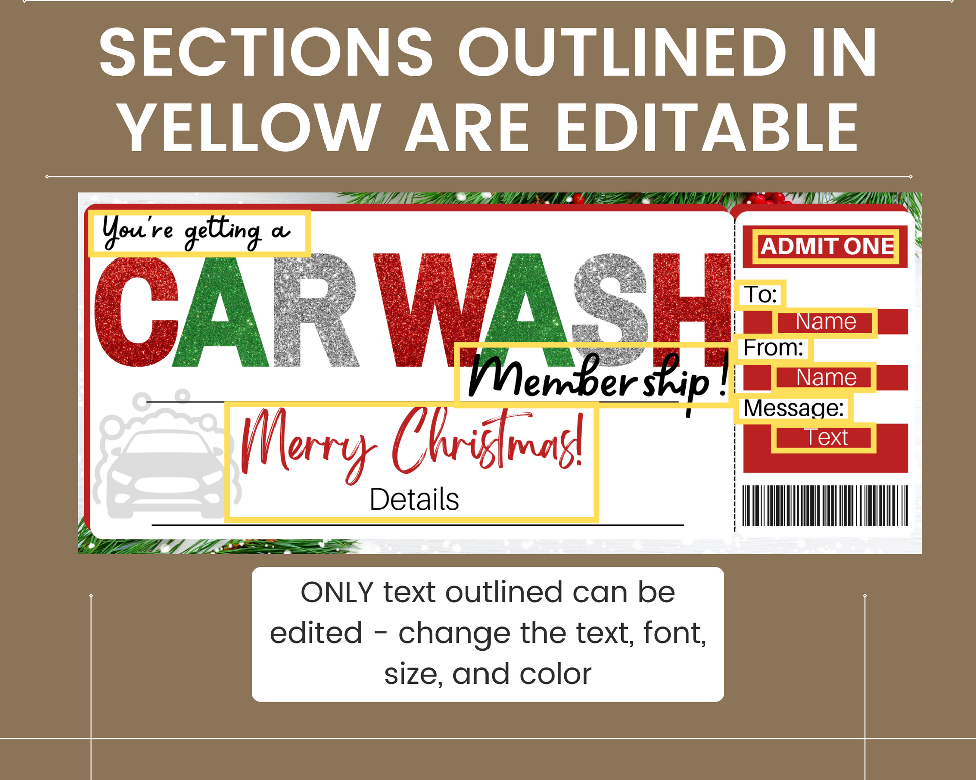 Christmas car wash gift certificate template. The perfect way to surprise someone with a car wash for Christmas!