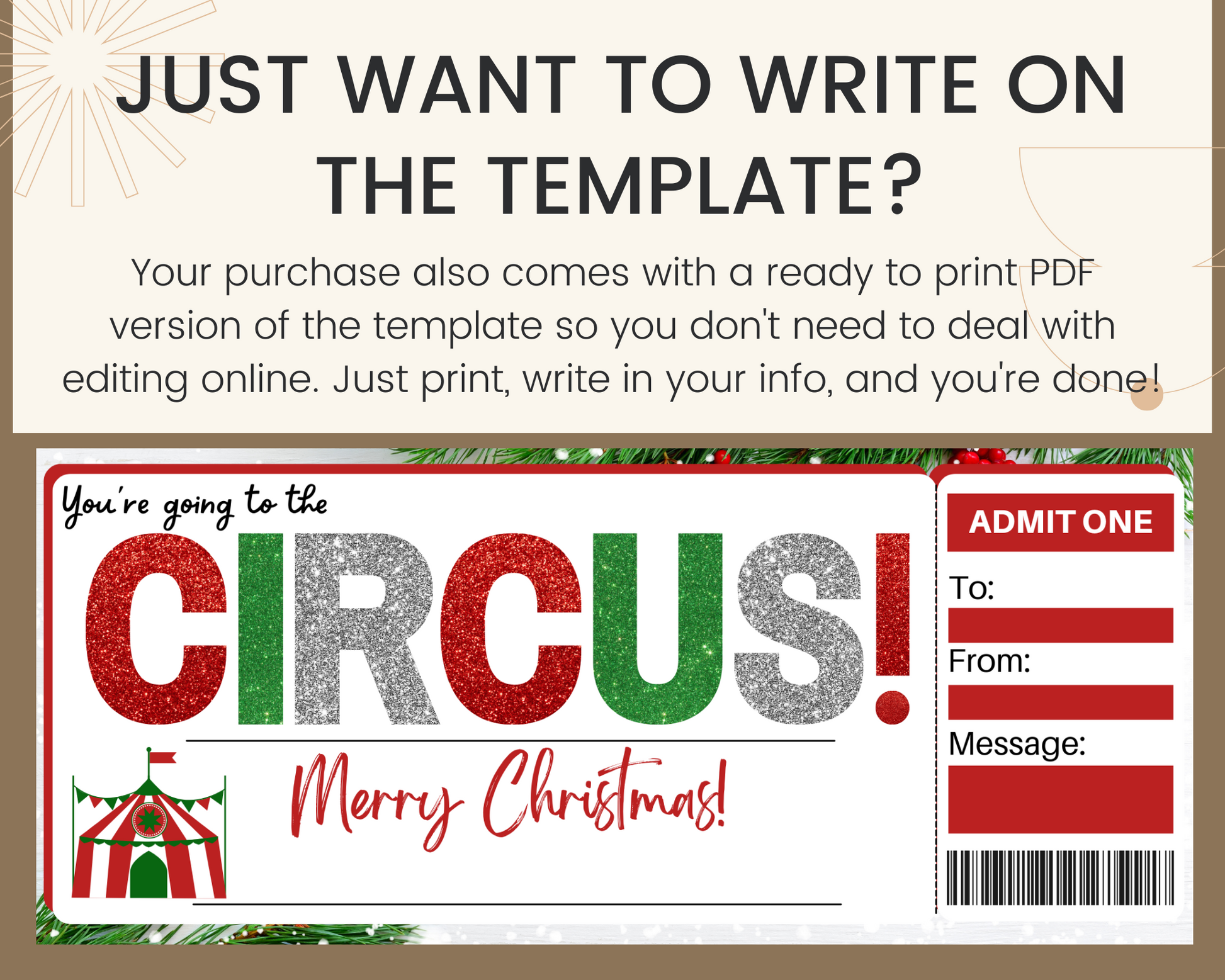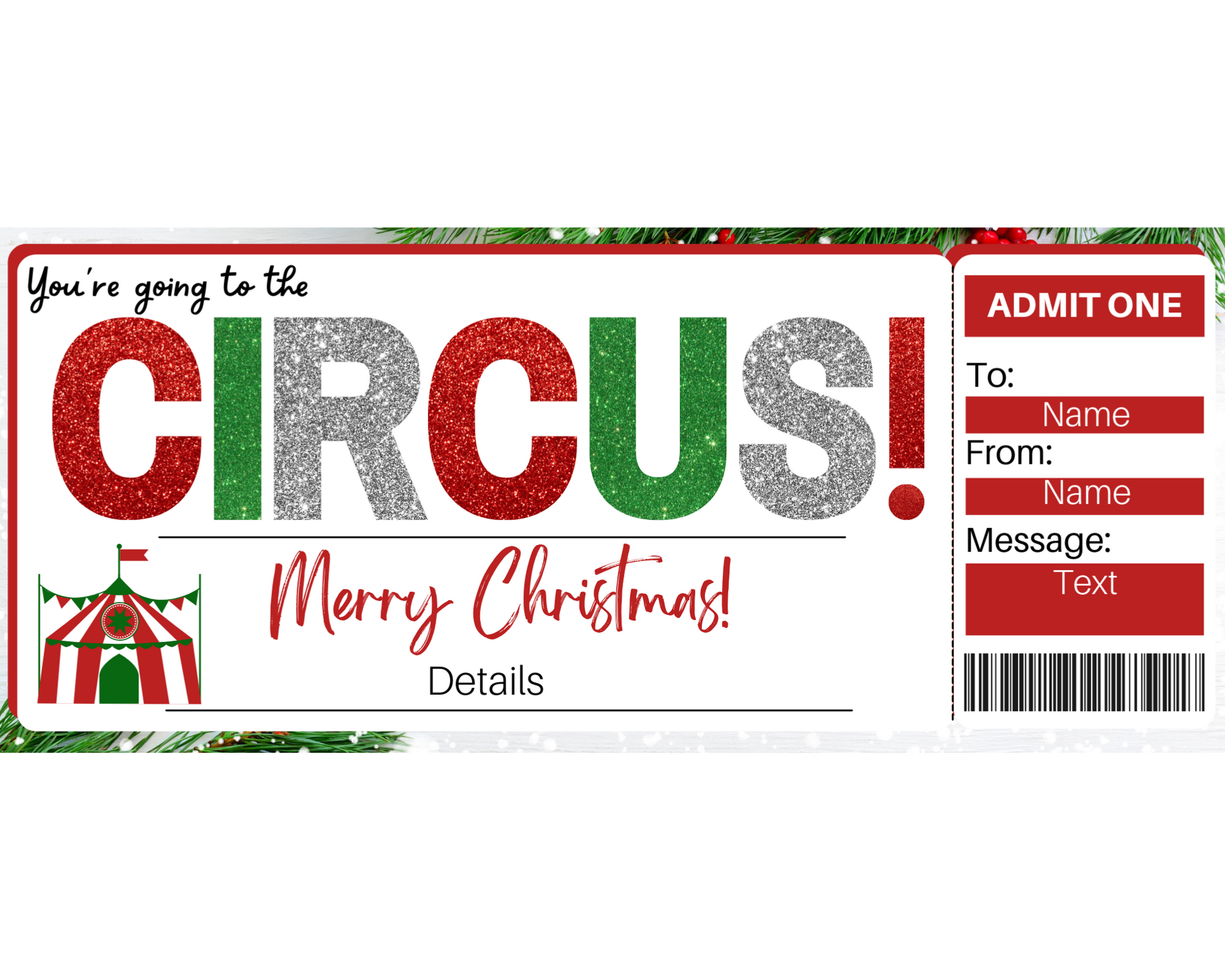 Christmas circus gift certificate. The perfect way to surprise someone with a trip to the circus for Christmas!