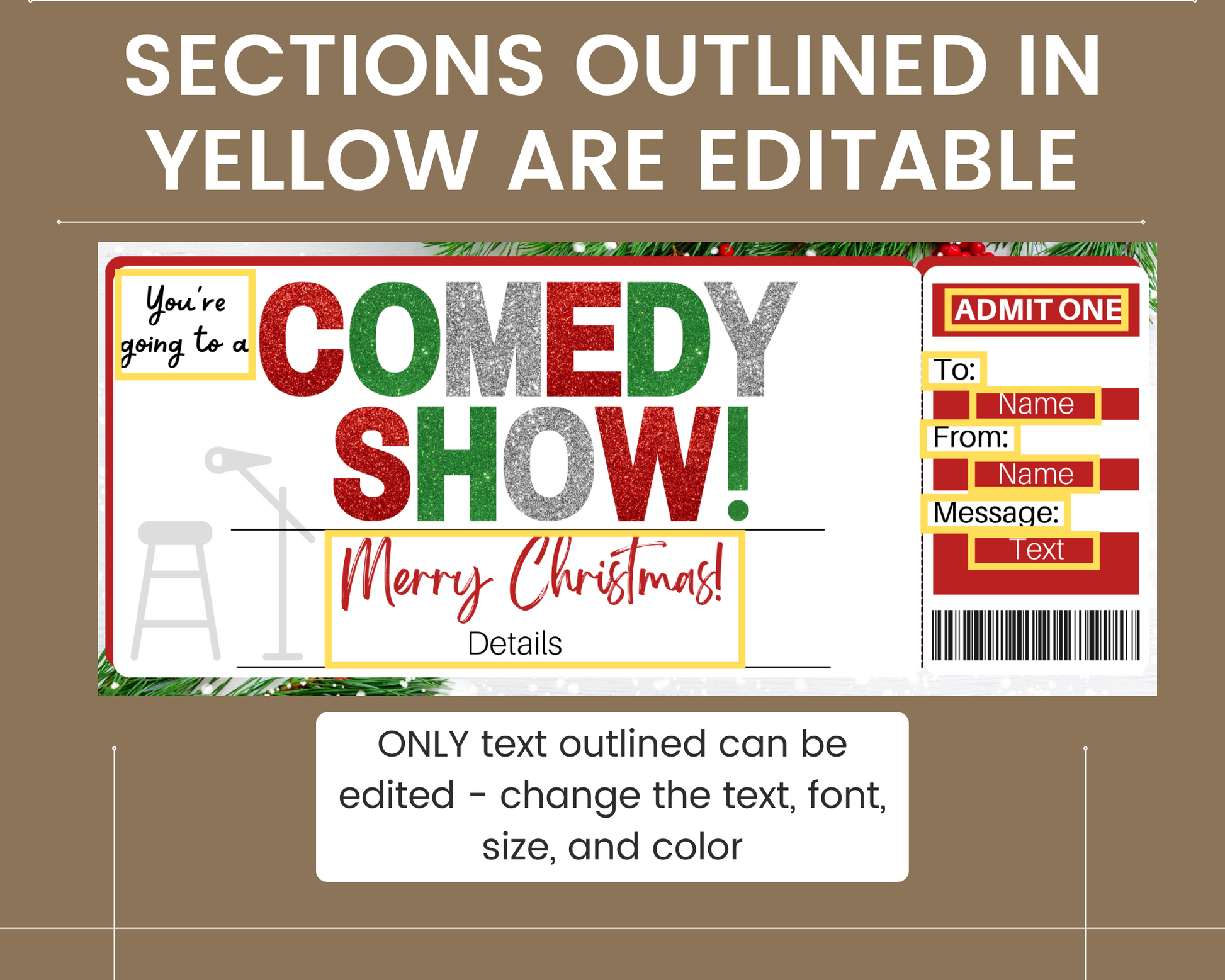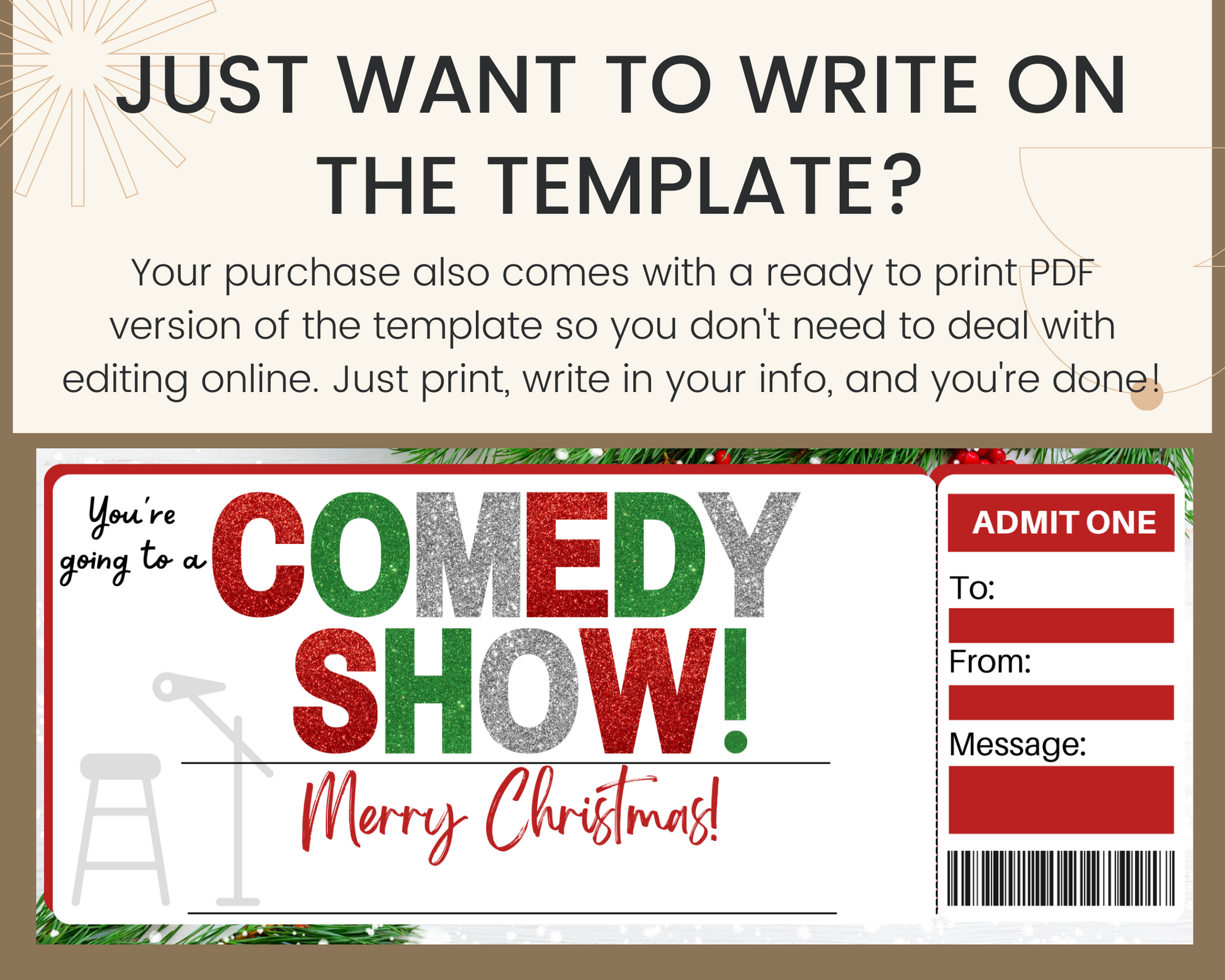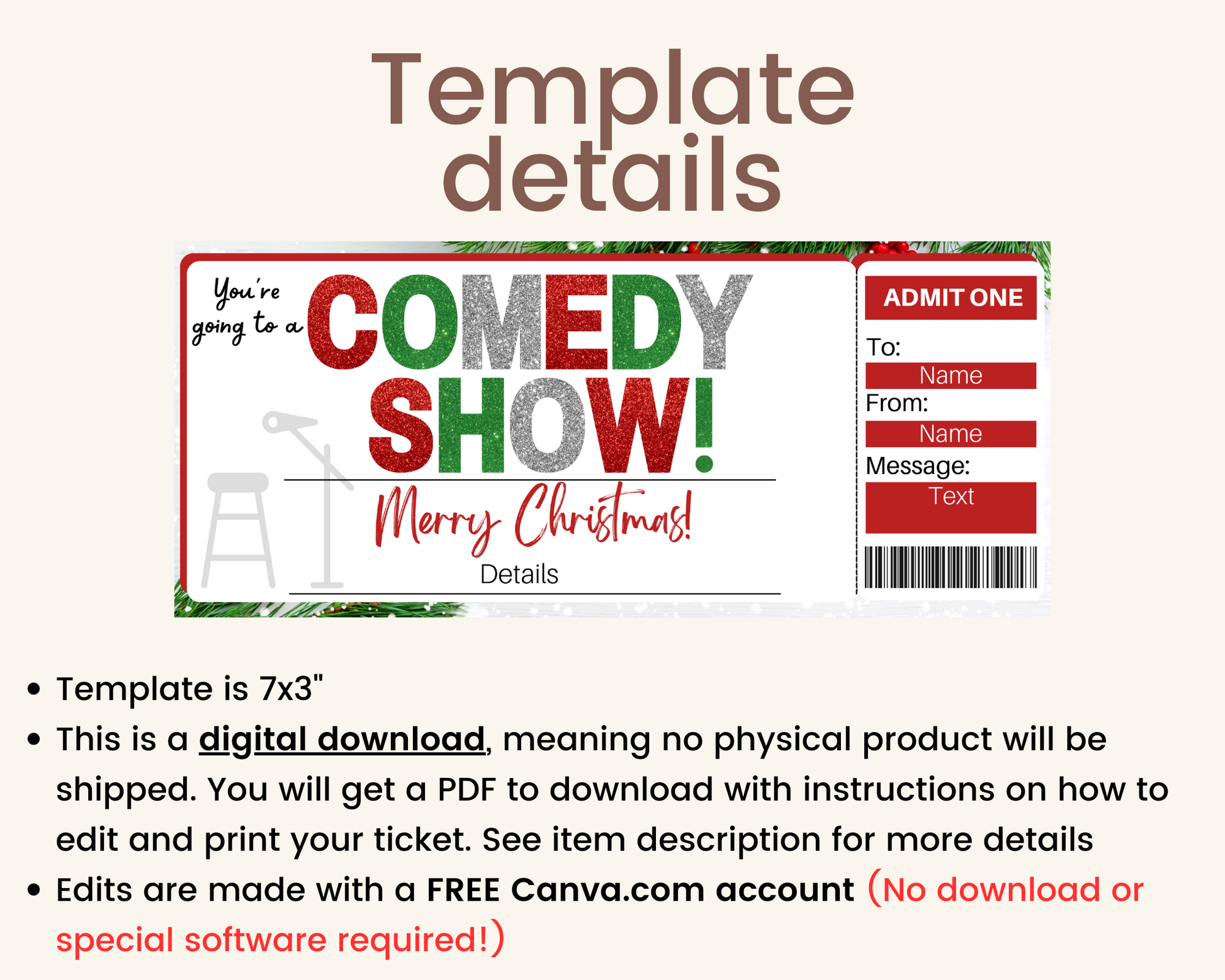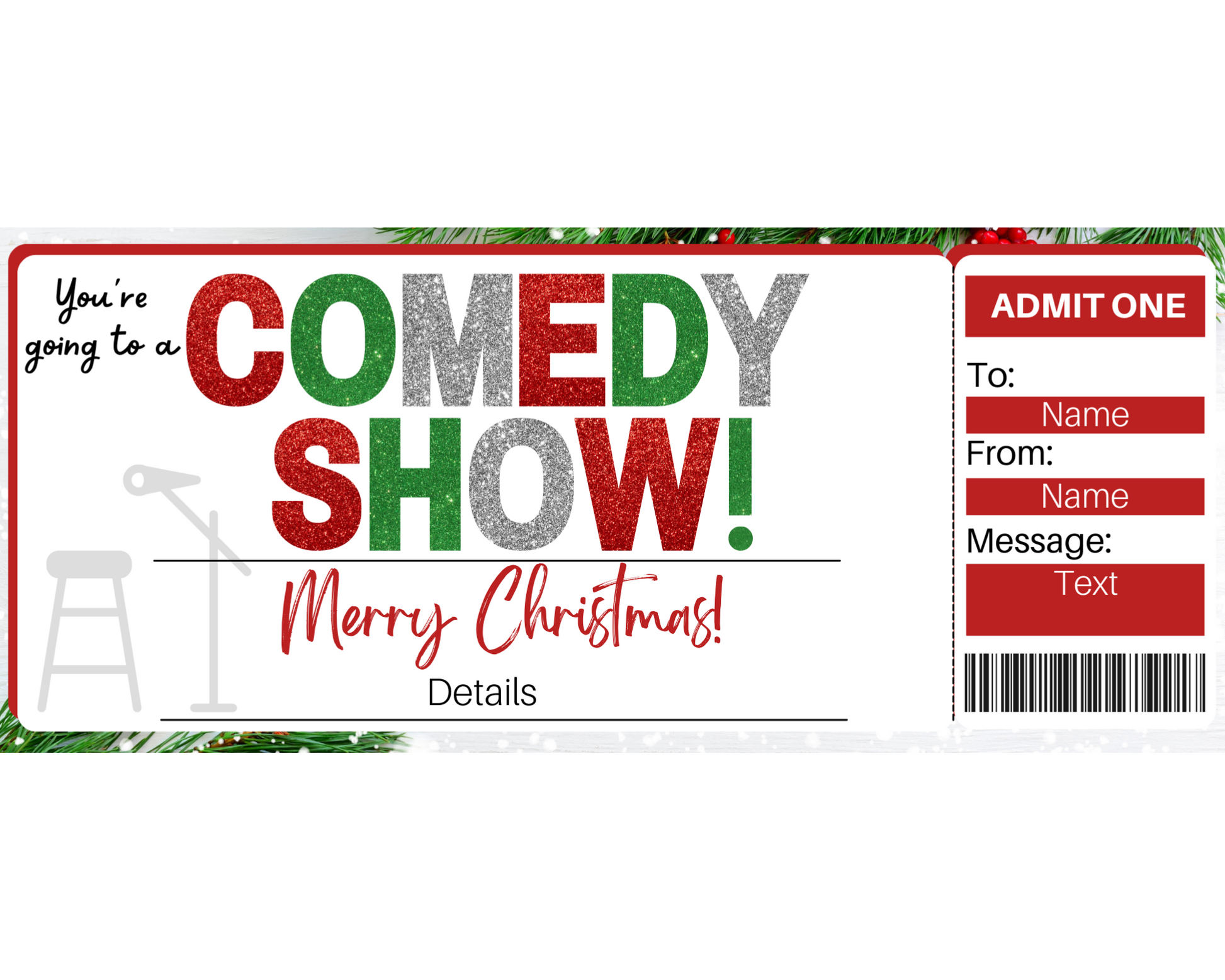 Christmas comedy show gift ticket. The perfect way to surprise someone with comedy show tickets for Christmas!