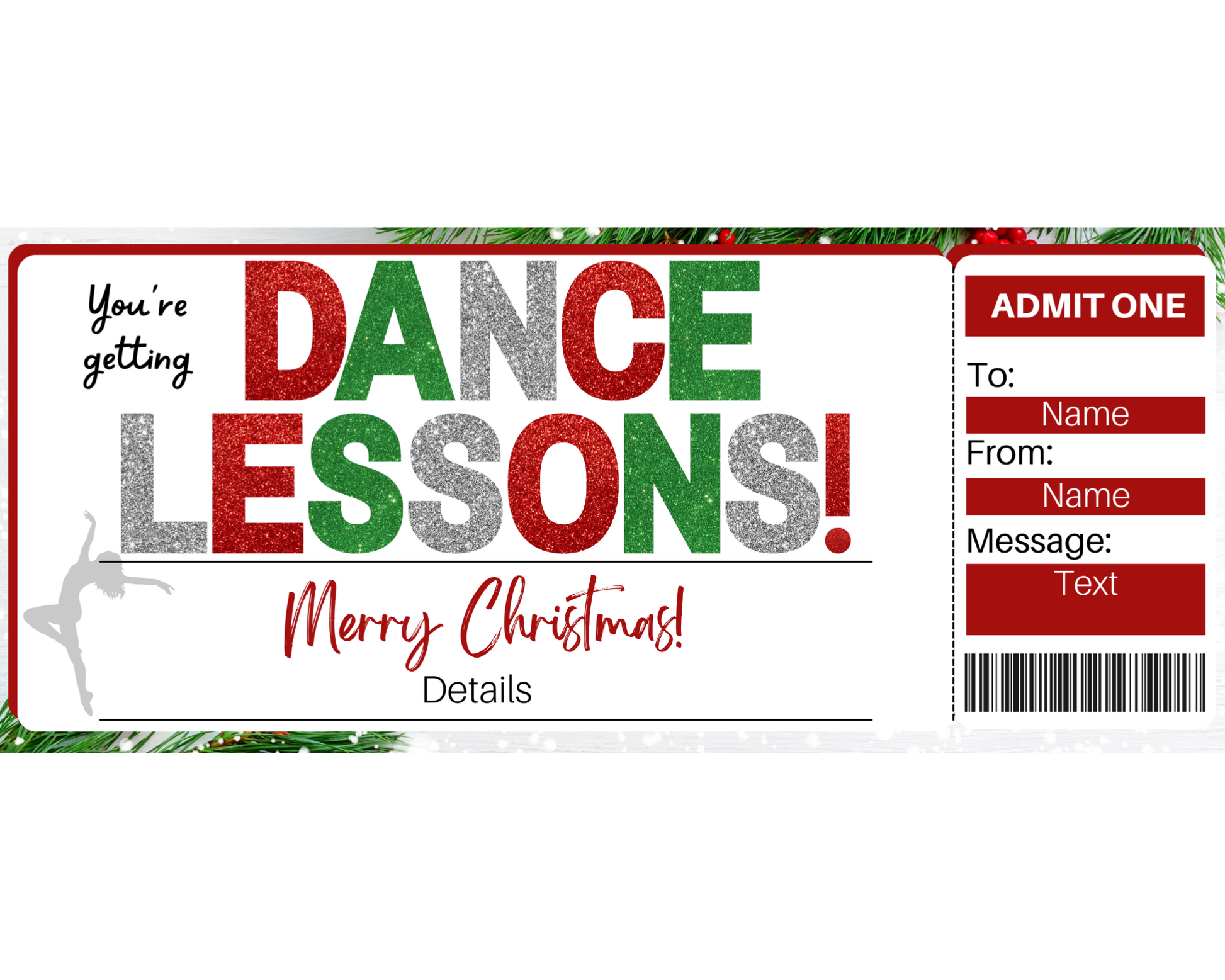 Christmas dance lessons gift certificate. The perfect way to surprise someone with dance lessons for Christmas!