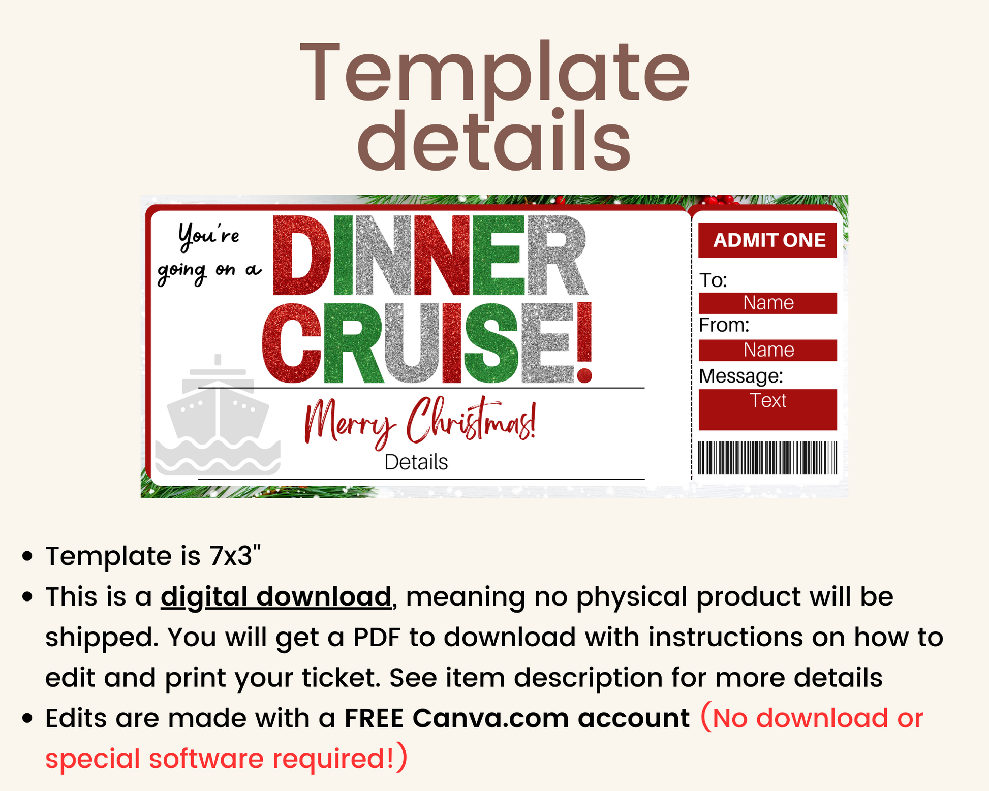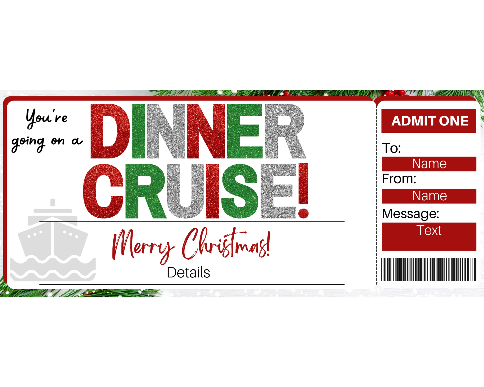 Christmas dinner cruise certificate template. The perfect way to surprise someone with a dinner cruise for Christmas!