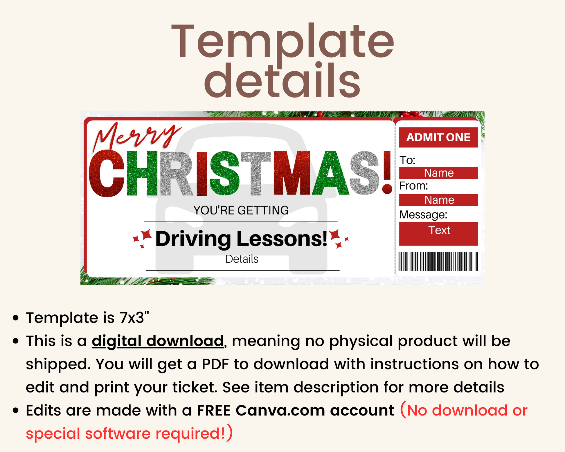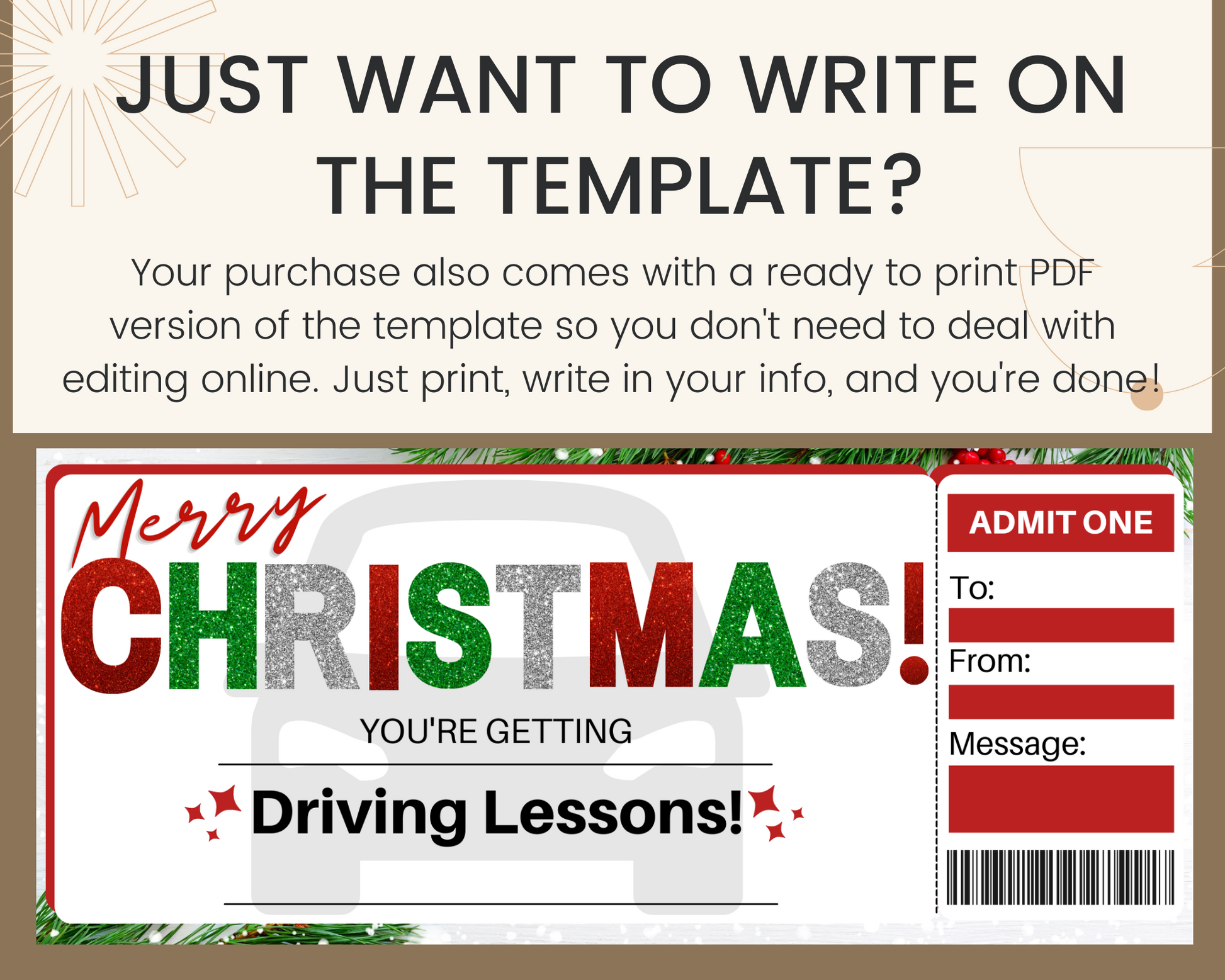 Christmas driving lessons gift certificate. The perfect way to surprise someone with driving lessons for Christmas!