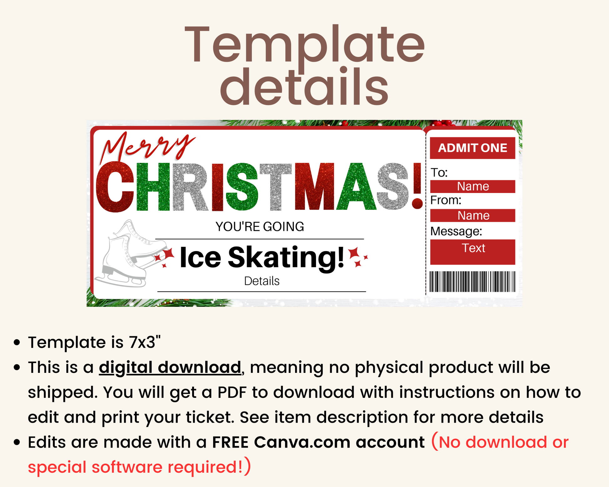 Christmas ice skating gift ticket. The perfect way to surprise someone with an ice skating trip for Christmas!