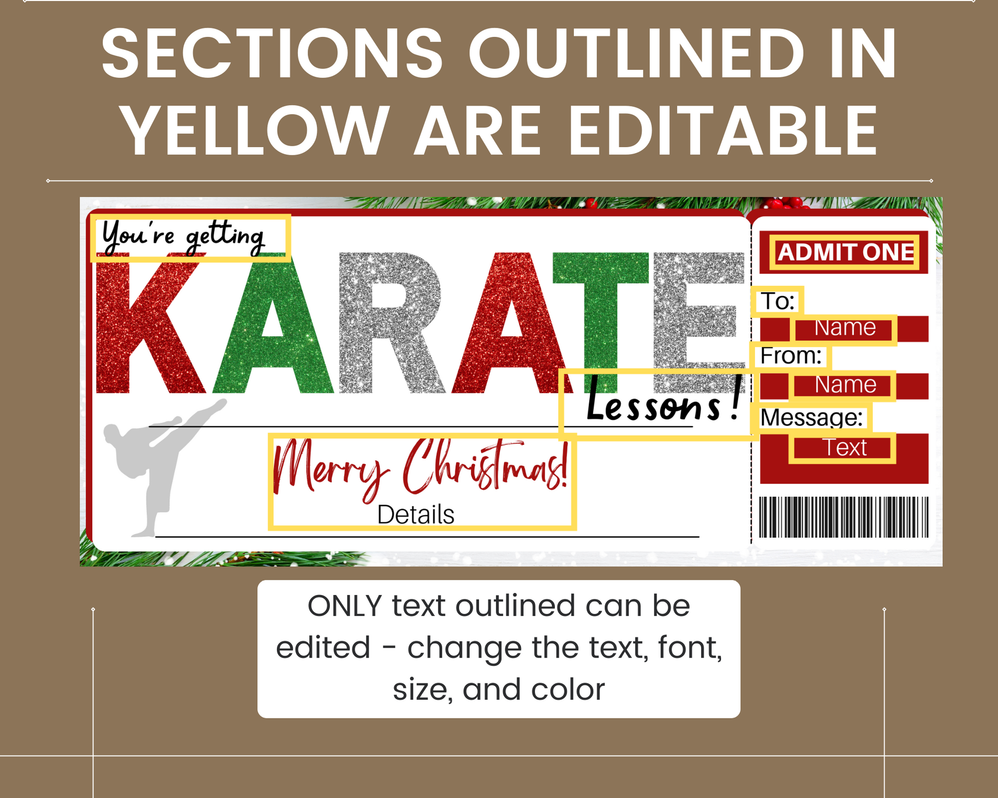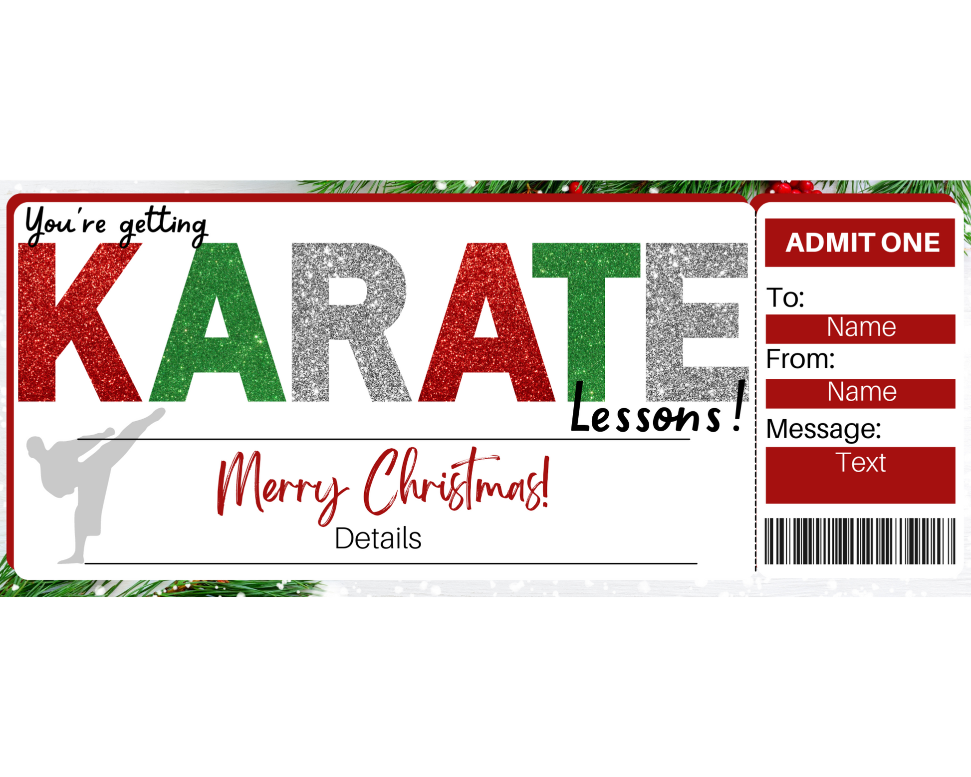 Christmas karate lesson gift certificate. The perfect way to surprise someone with karate lessons for Christmas!