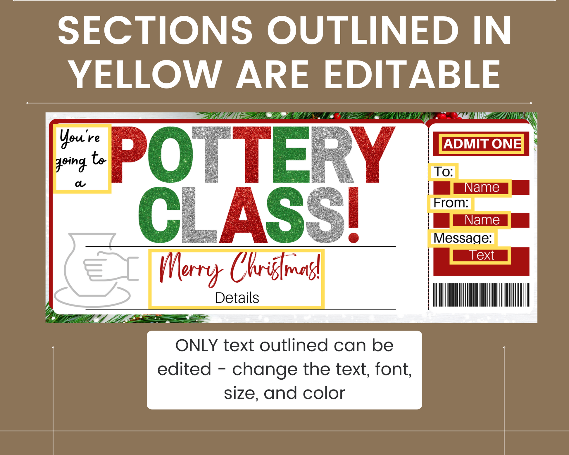 Christmas pottery class gift certificate template. The perfect way to surprise someone with a pottery class for Christmas!