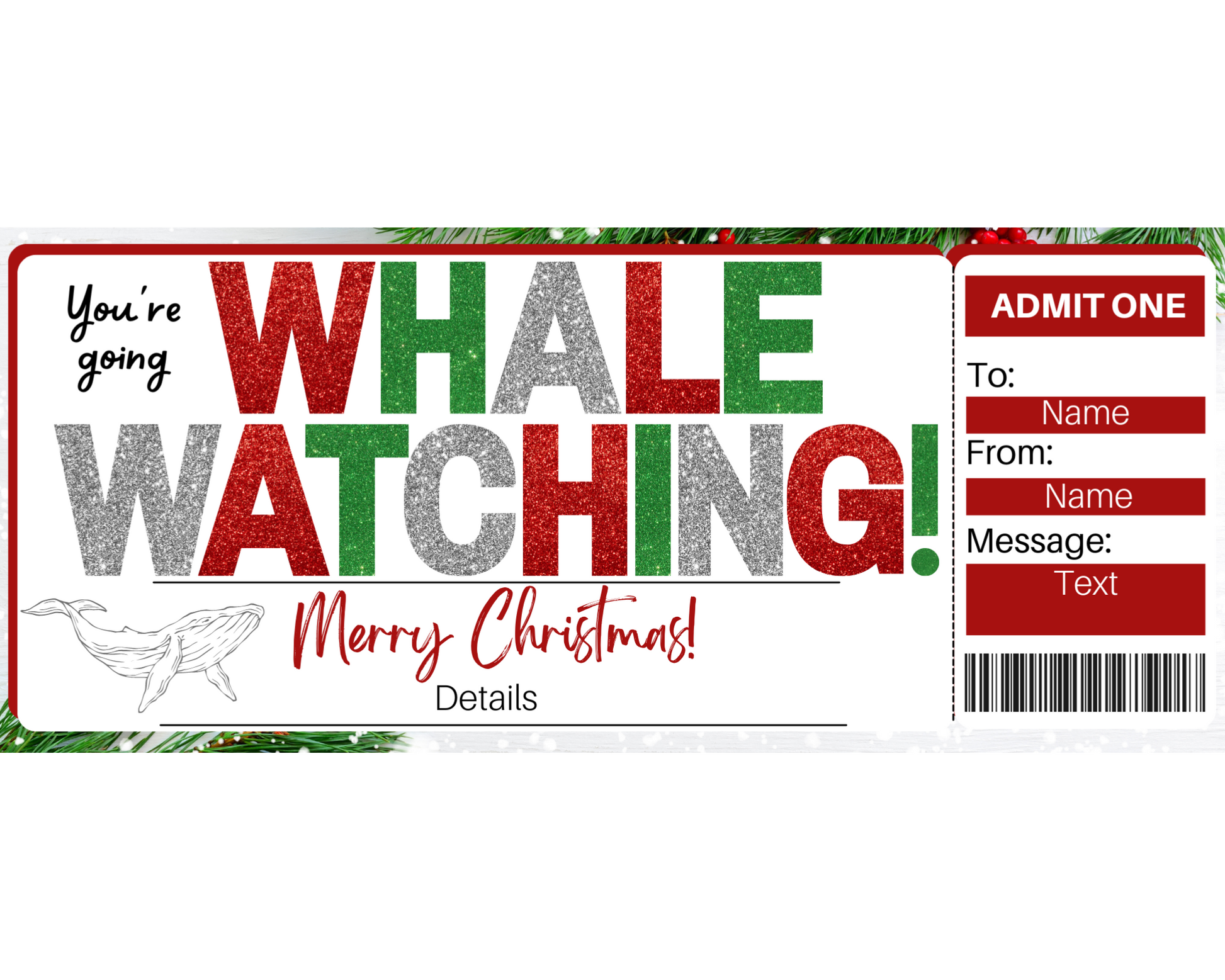 Christmas whale watching gift certificate. The perfect way to surprise someone with a whale watching trip for Christmas!