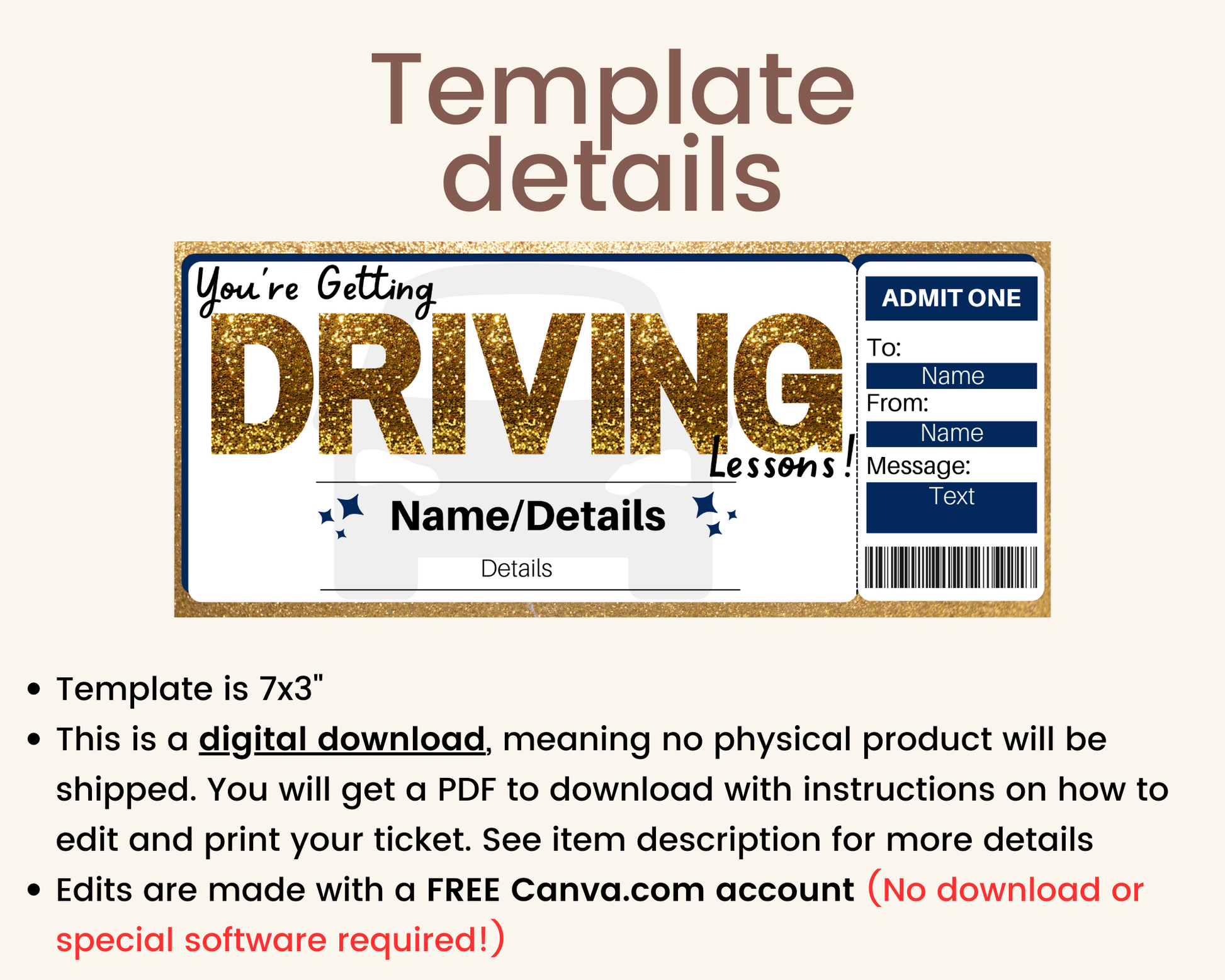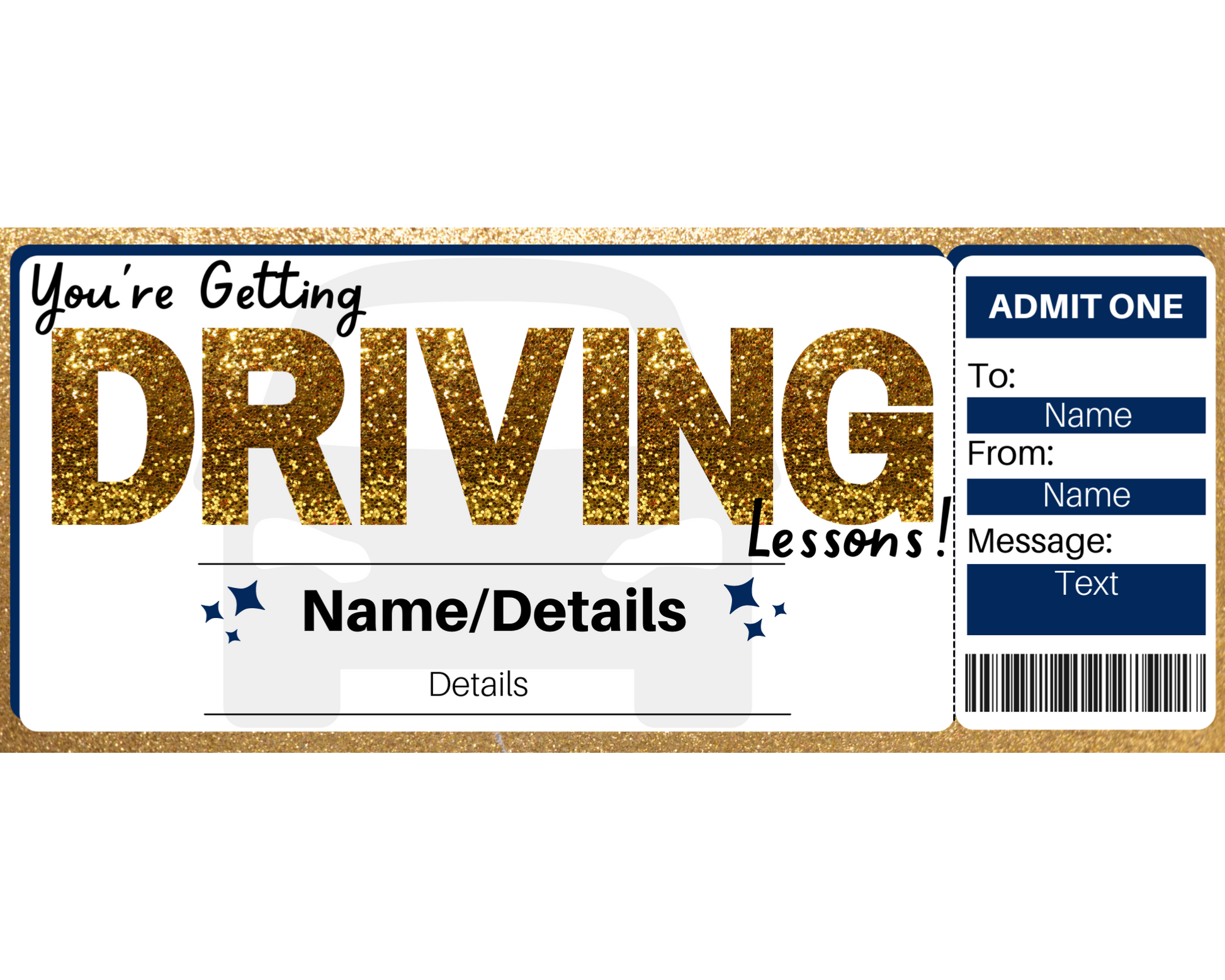 Driving lessons gift template. The perfect way to surprise someone with driving lessons for any occasion!