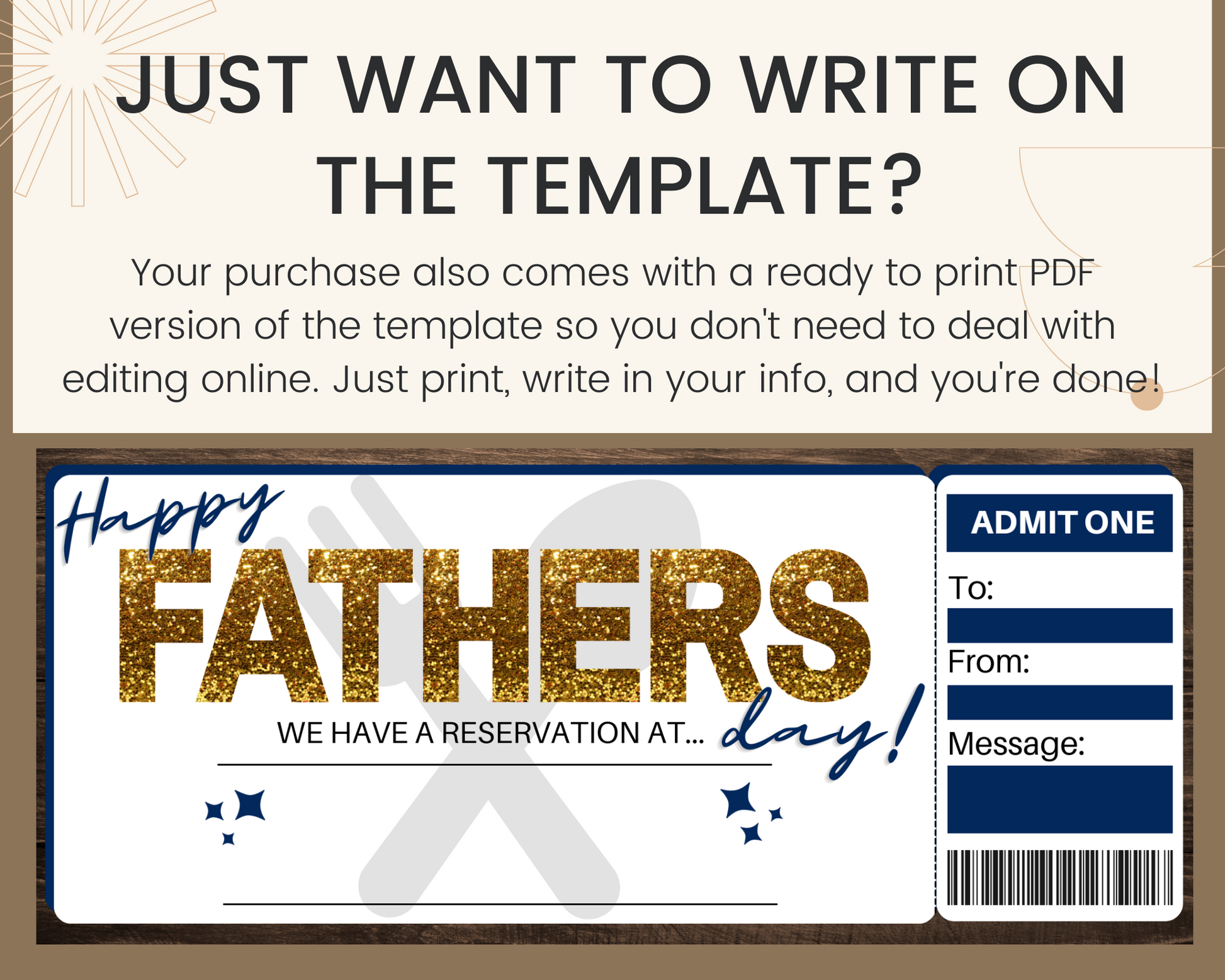 Father's Day table reservation gift ticket template. The perfect way to surprise someone with table reservation for Father's Day!
