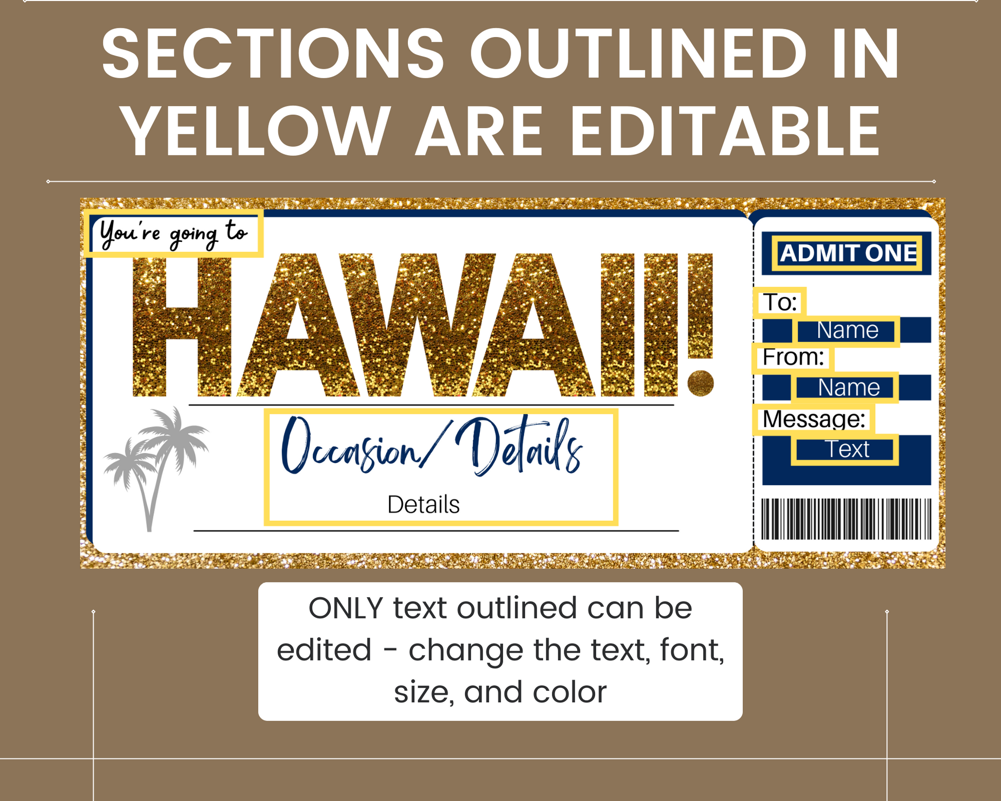 Hawaii boarding pass template. The perfect way to surprise someone with a trip to Hawaii for any occasion!