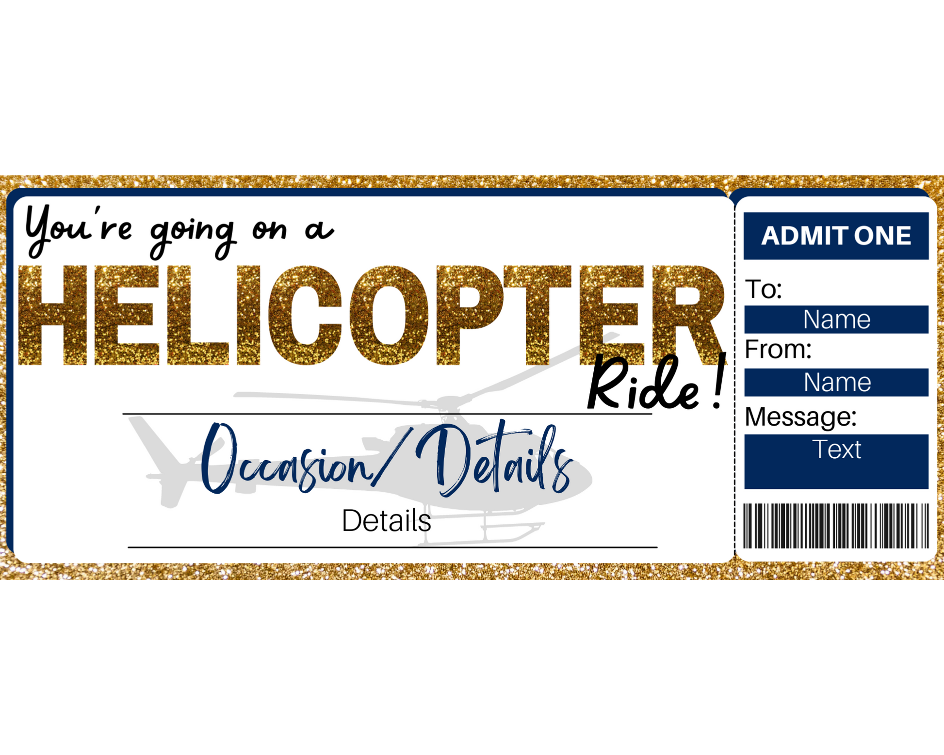 Helicopter ride gift certificate. The perfect way to surprise someone with a helicopter ride for any occasion!