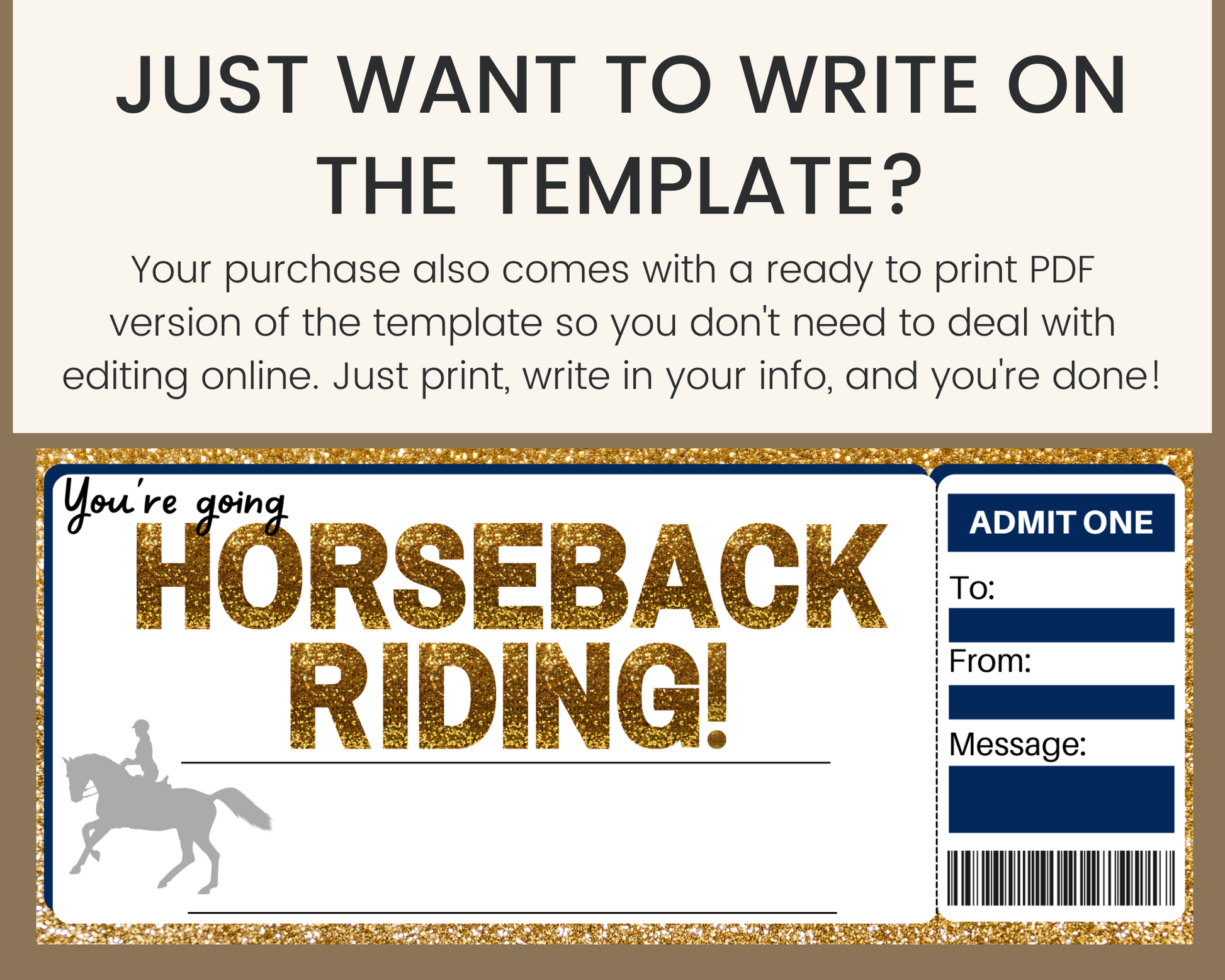 Printable horseback riding gift ticket. The perfect way to surprise someone with a horseback riding adventure for any occasion!