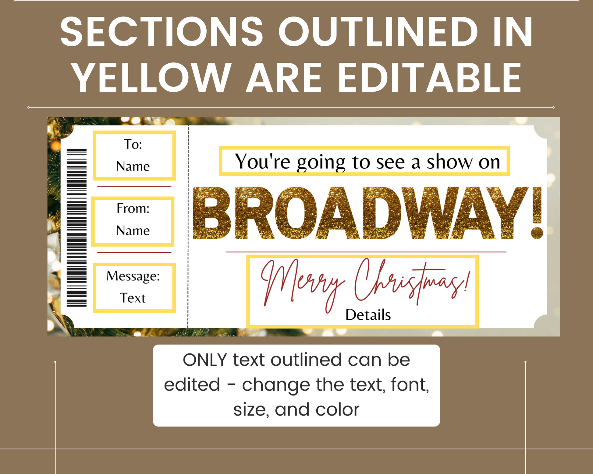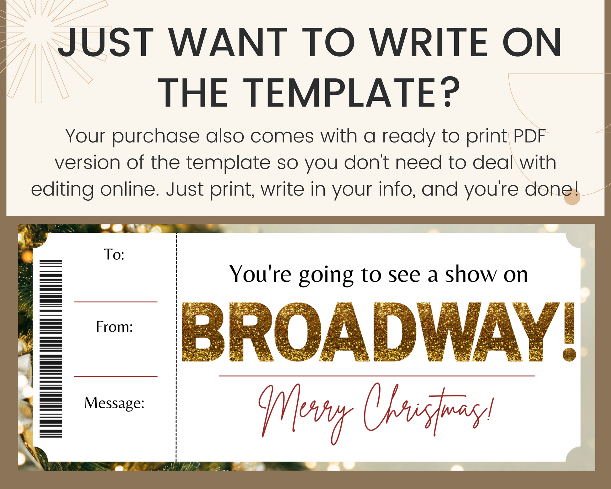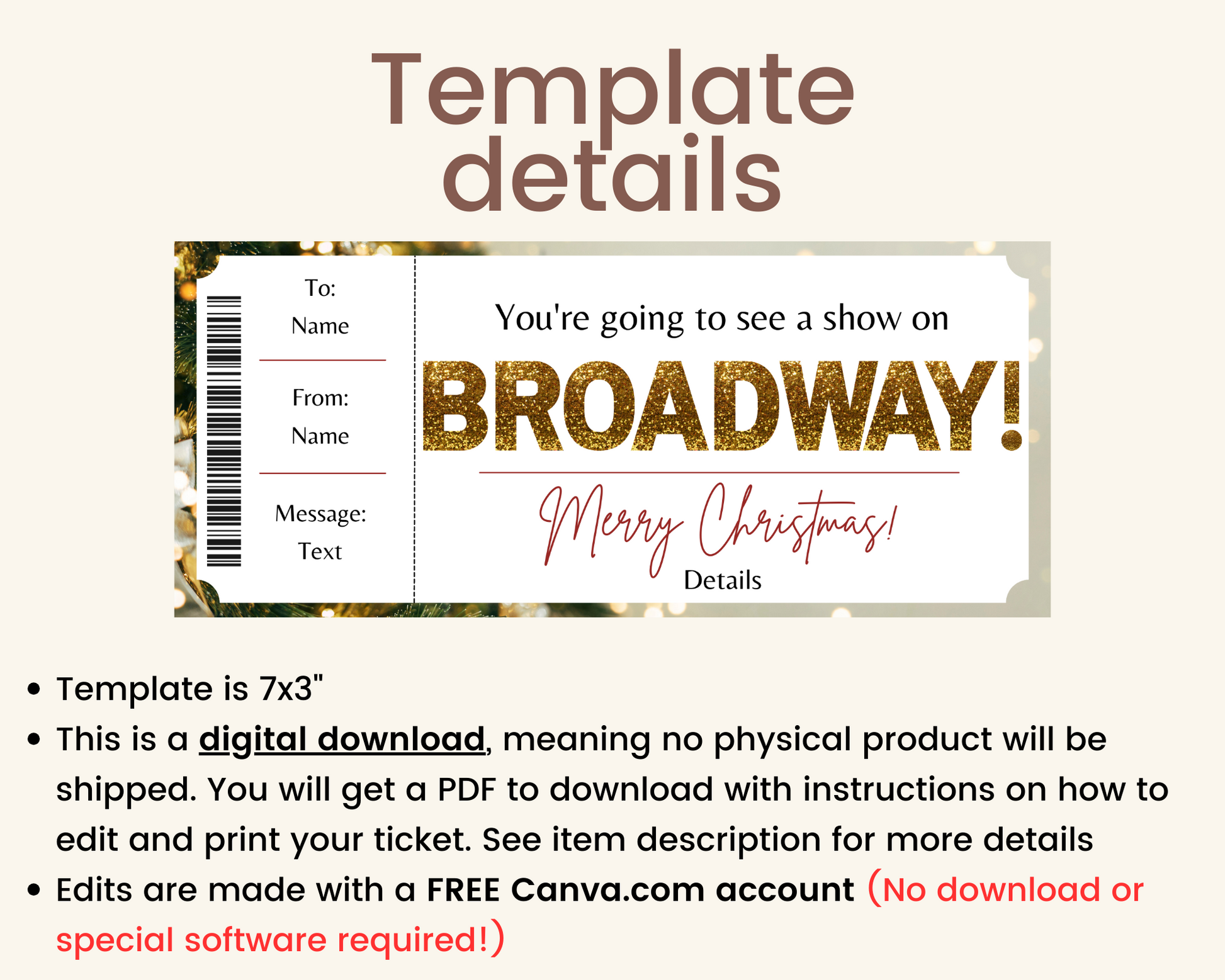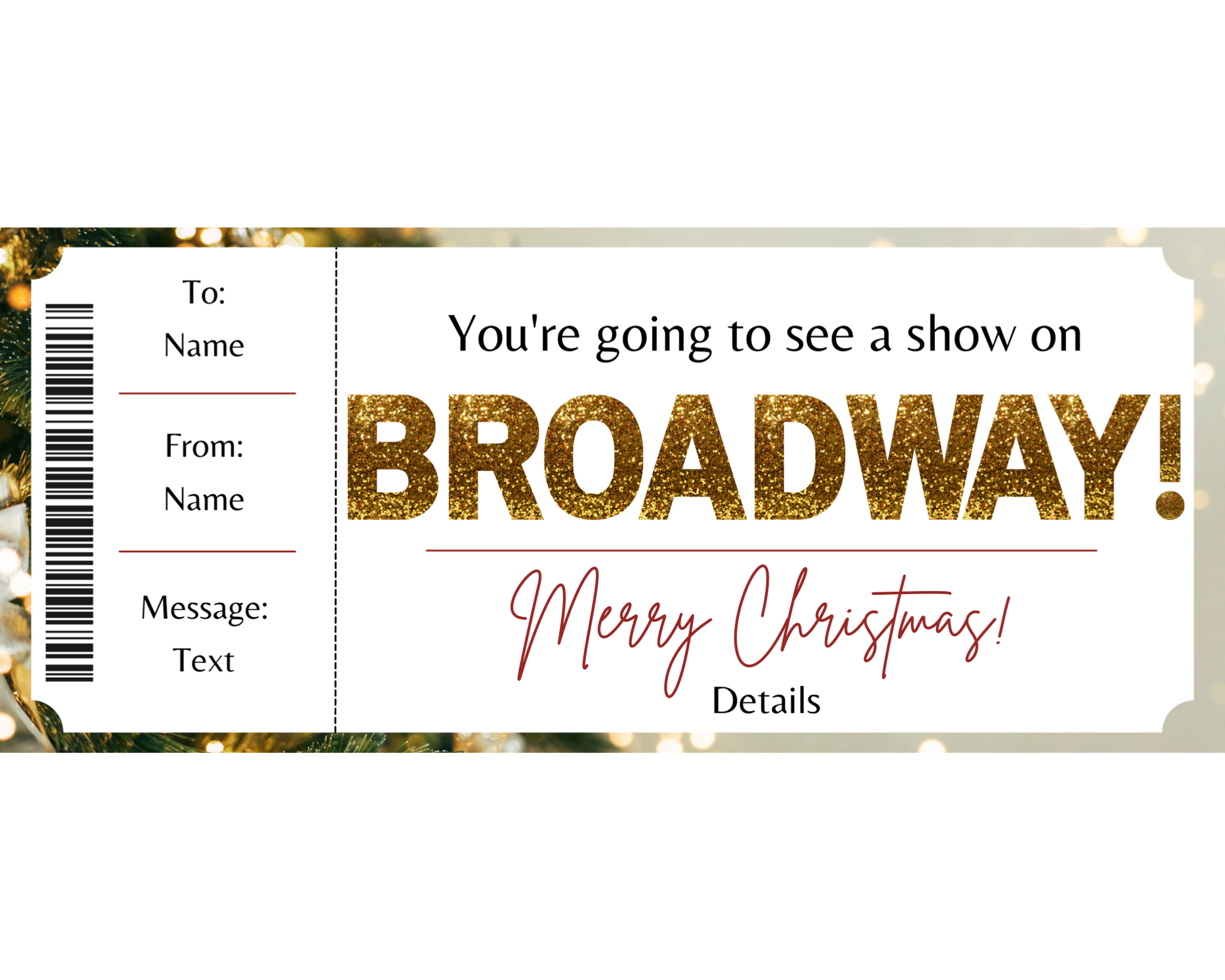 Christmas broadway show ticket template. The perfect way to surprise someone with a broadway show for Christmas!