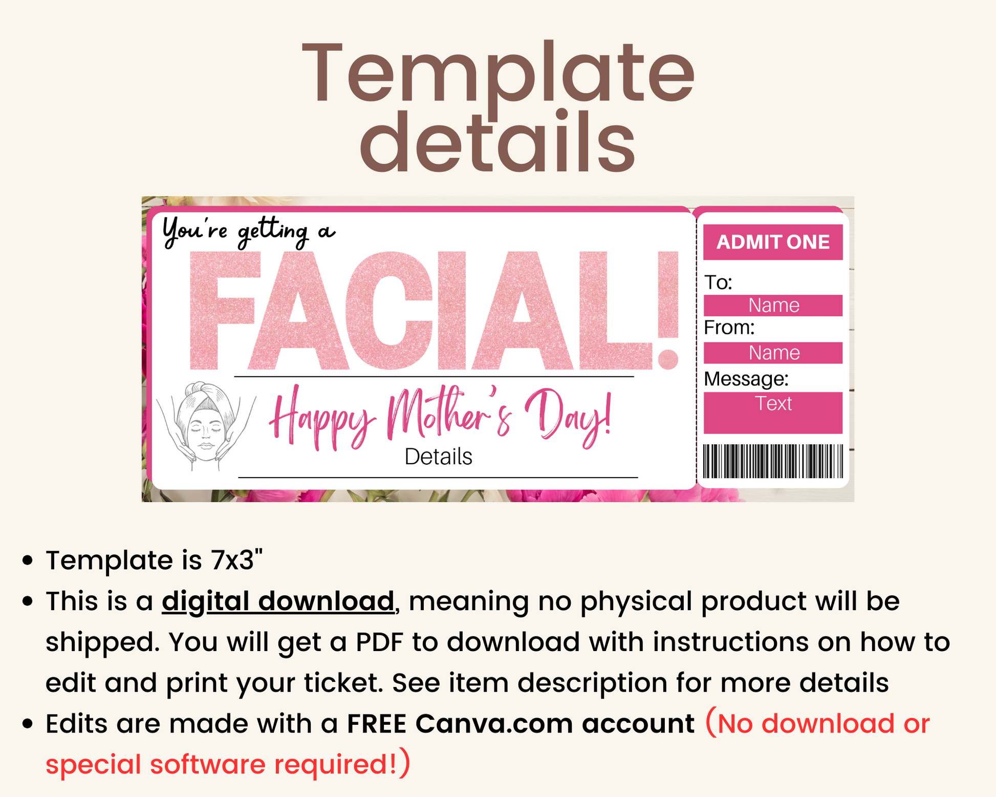 Mother's Day Facial Gift Ticket Template