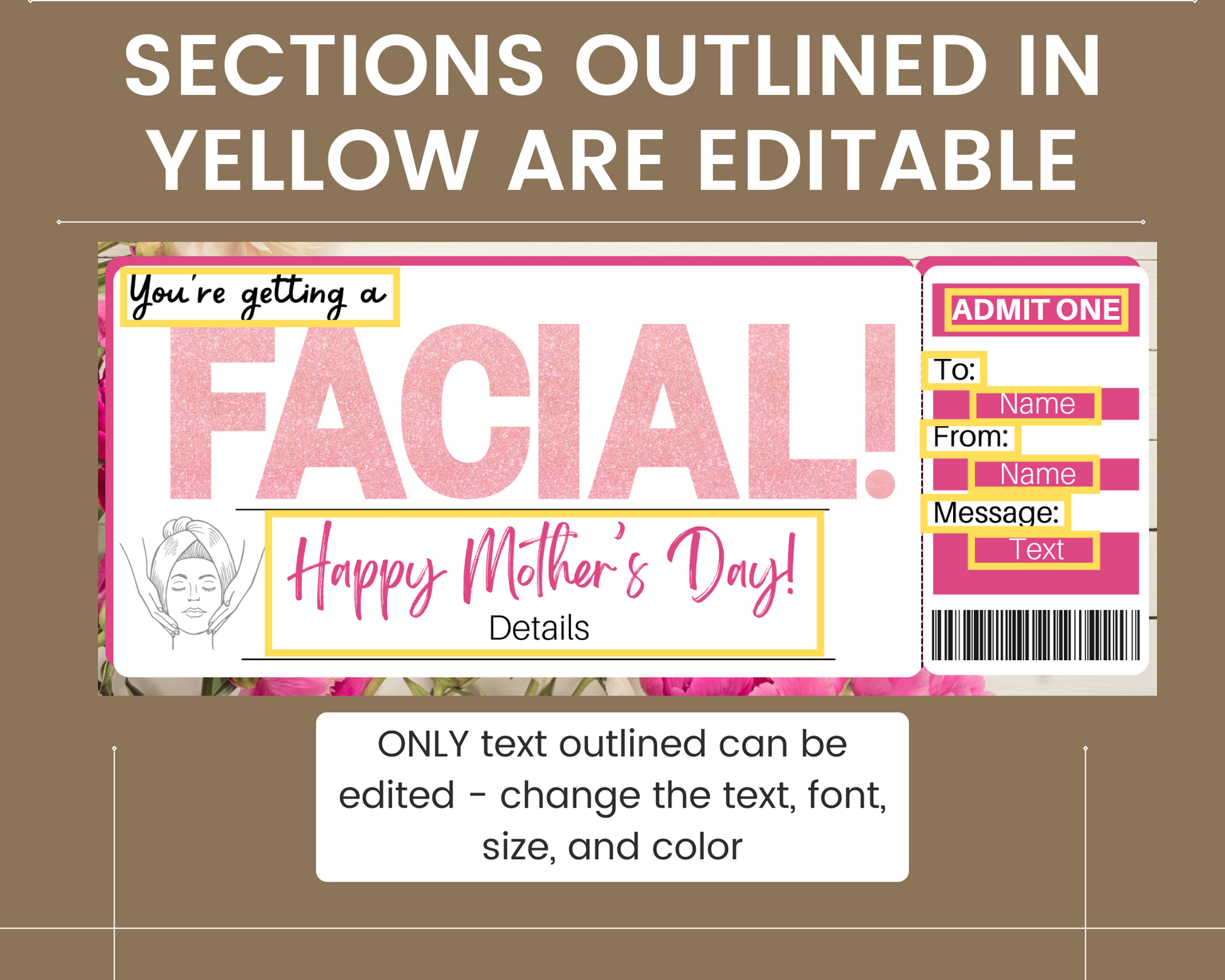 Mother's Day facial gift ticket template. The perfect way to gift mom a facial for Mother's Day!