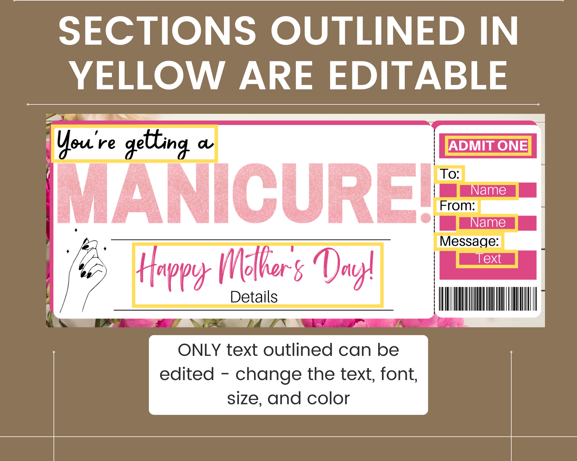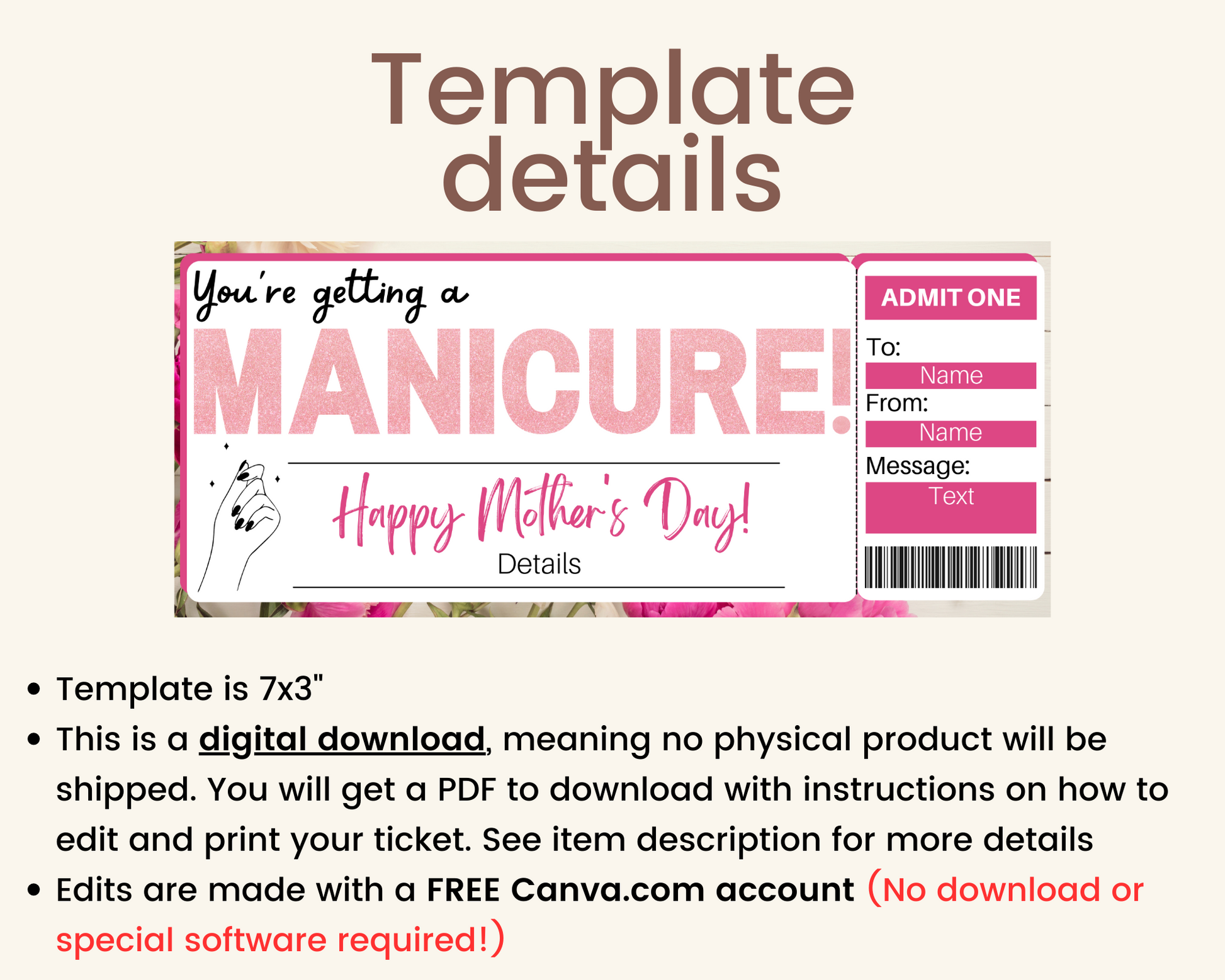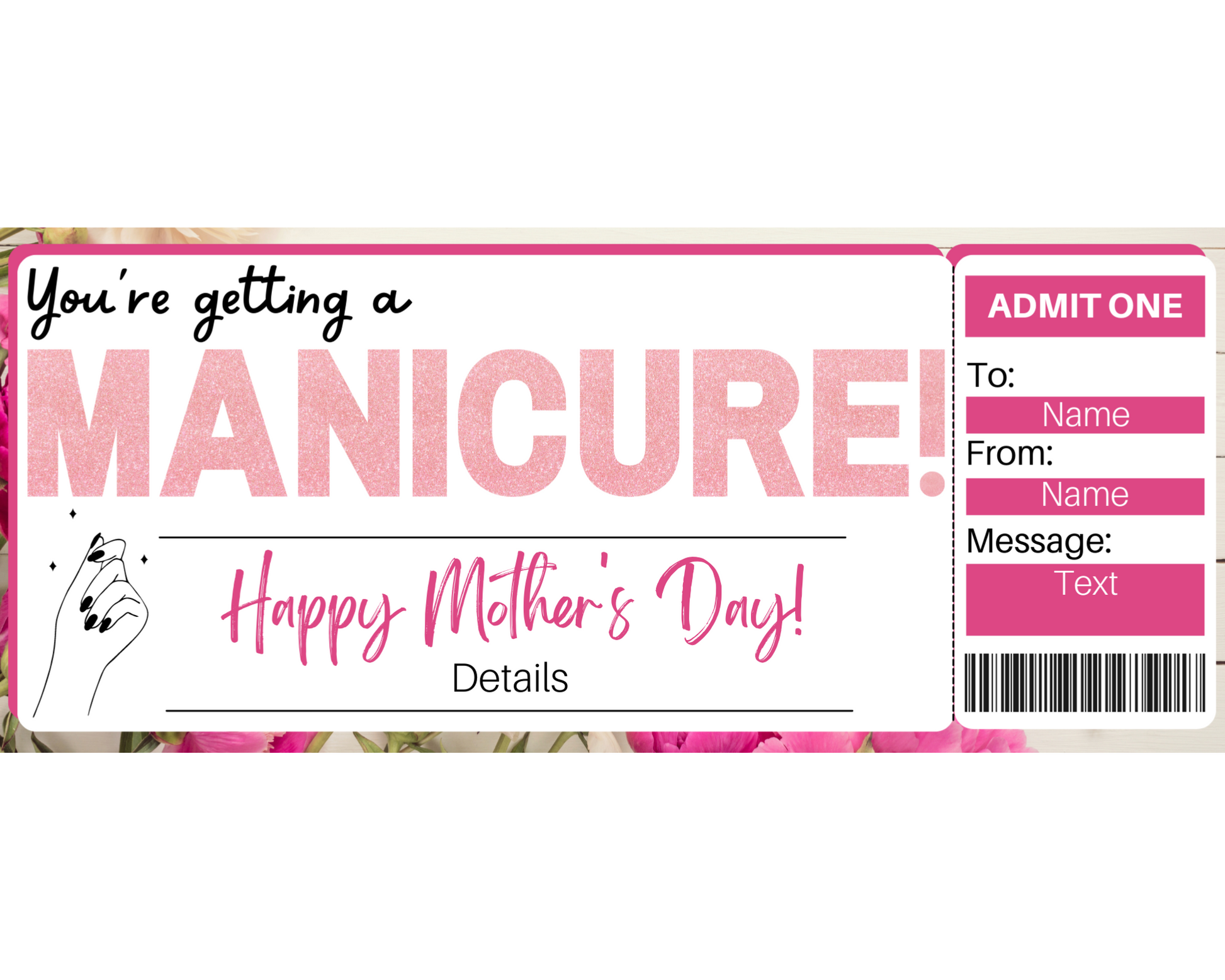 Mother's Day Manicure Gift Ticket Template
