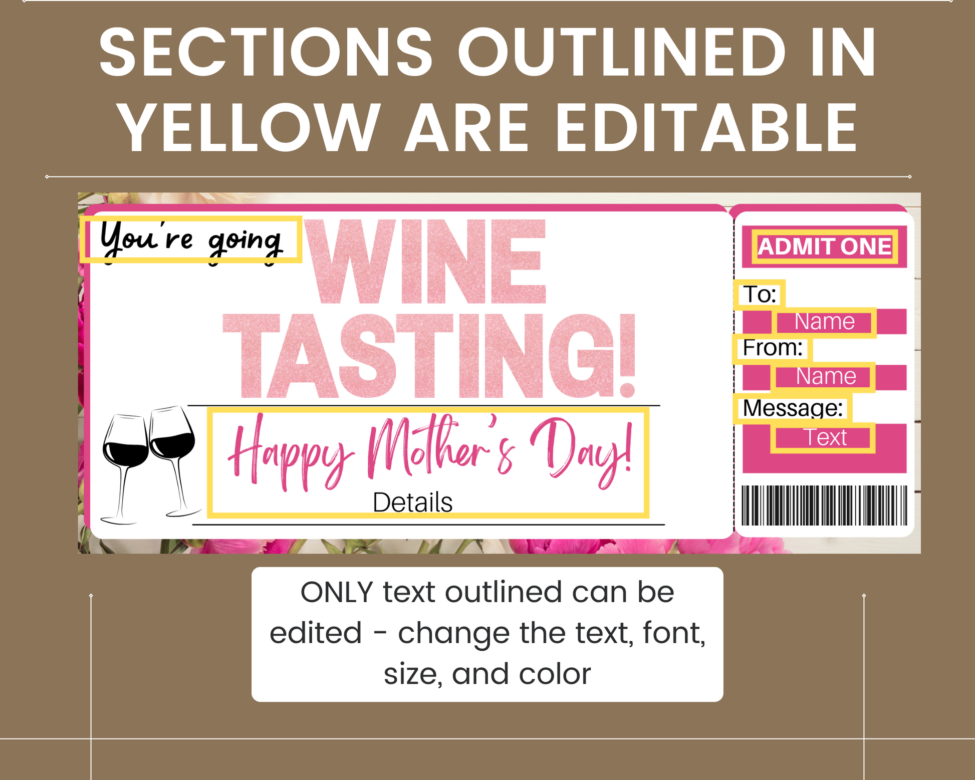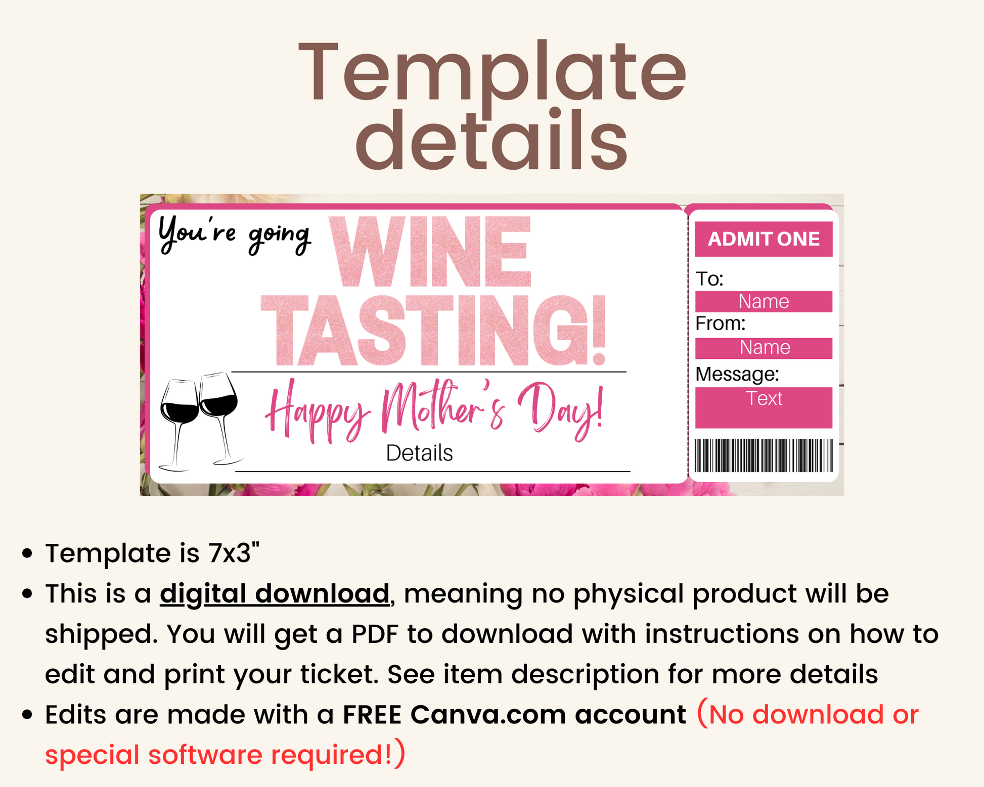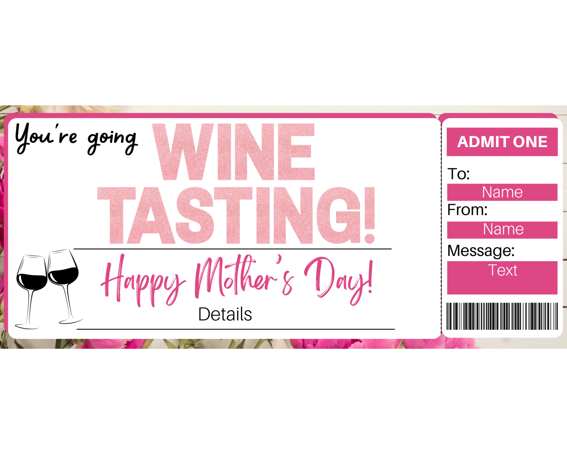 Mother's Day wine tasting gift certificate template. The perfect way to surprise someone with wine tasting for Mother's Day!
