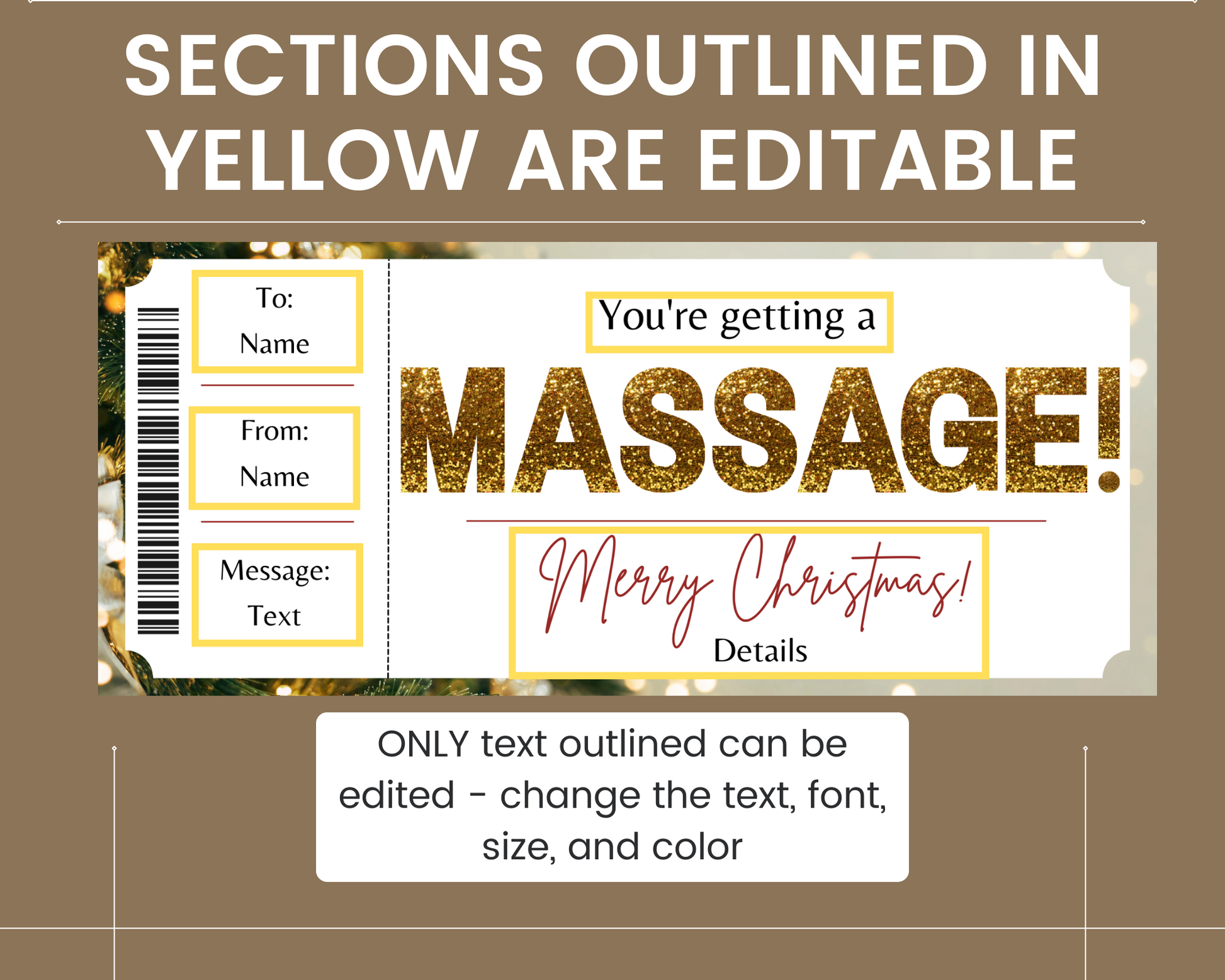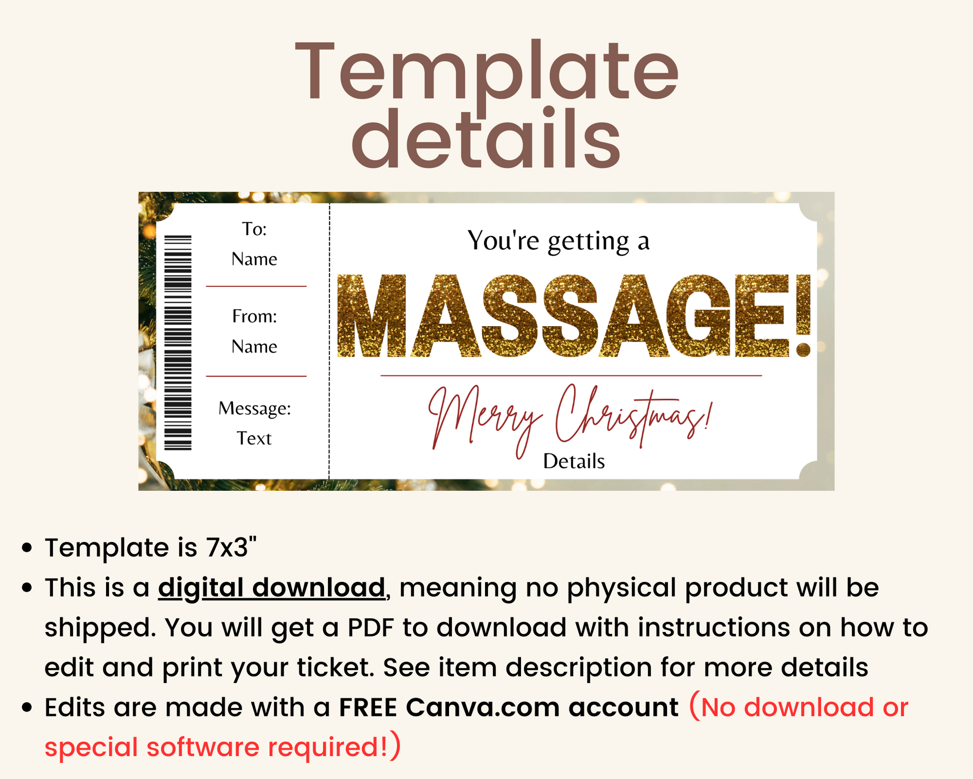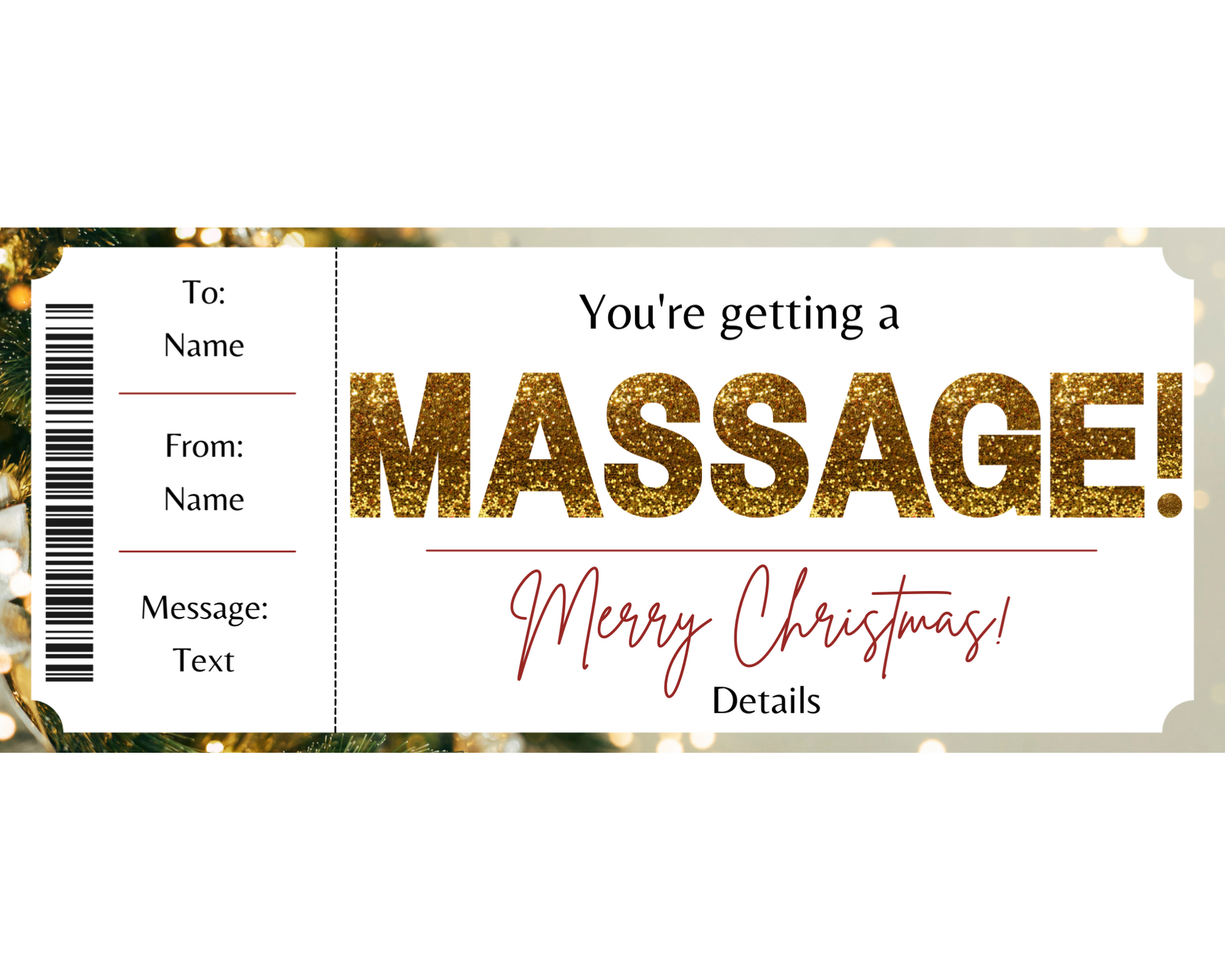 Christmas massage gift certificate template. The perfect way to surprise someone with a massage for Christmas!