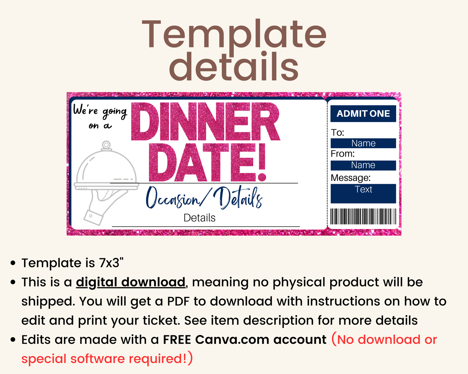 -This is a digital download: After purchase is confirmed, you will receive a PDF emailed to you that will give you further instructions on how to access and edit your template. No physical product will be mailed.