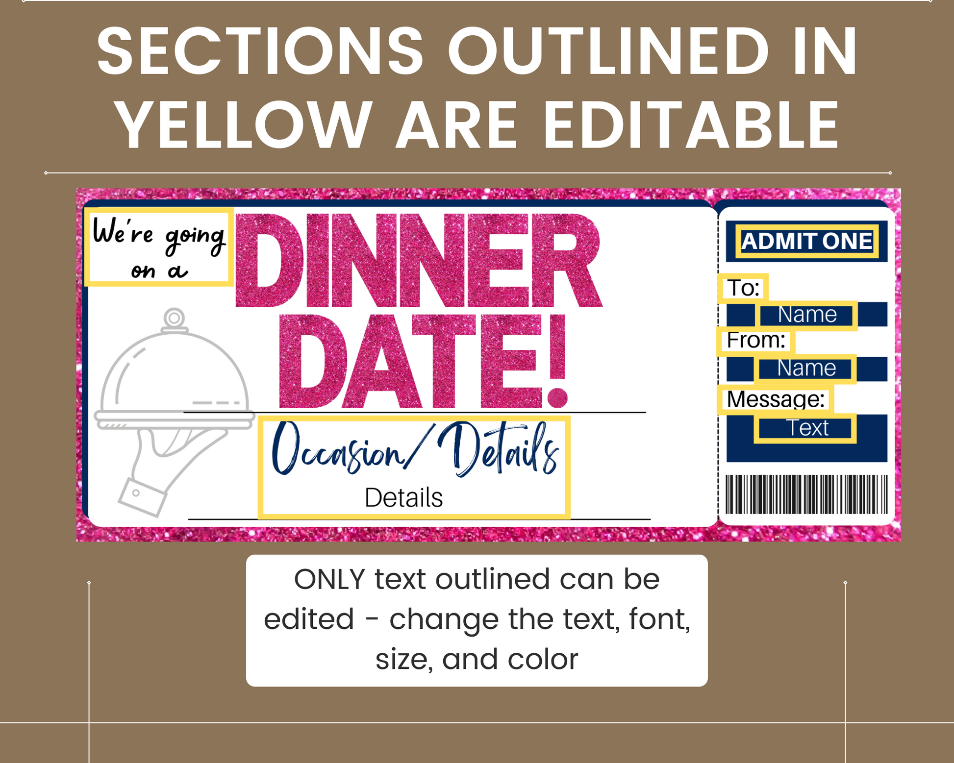 -Editable text is outlined in a yellow rectangle in the listing images. You can change the font, size of the font, colors, and locations if you wish!