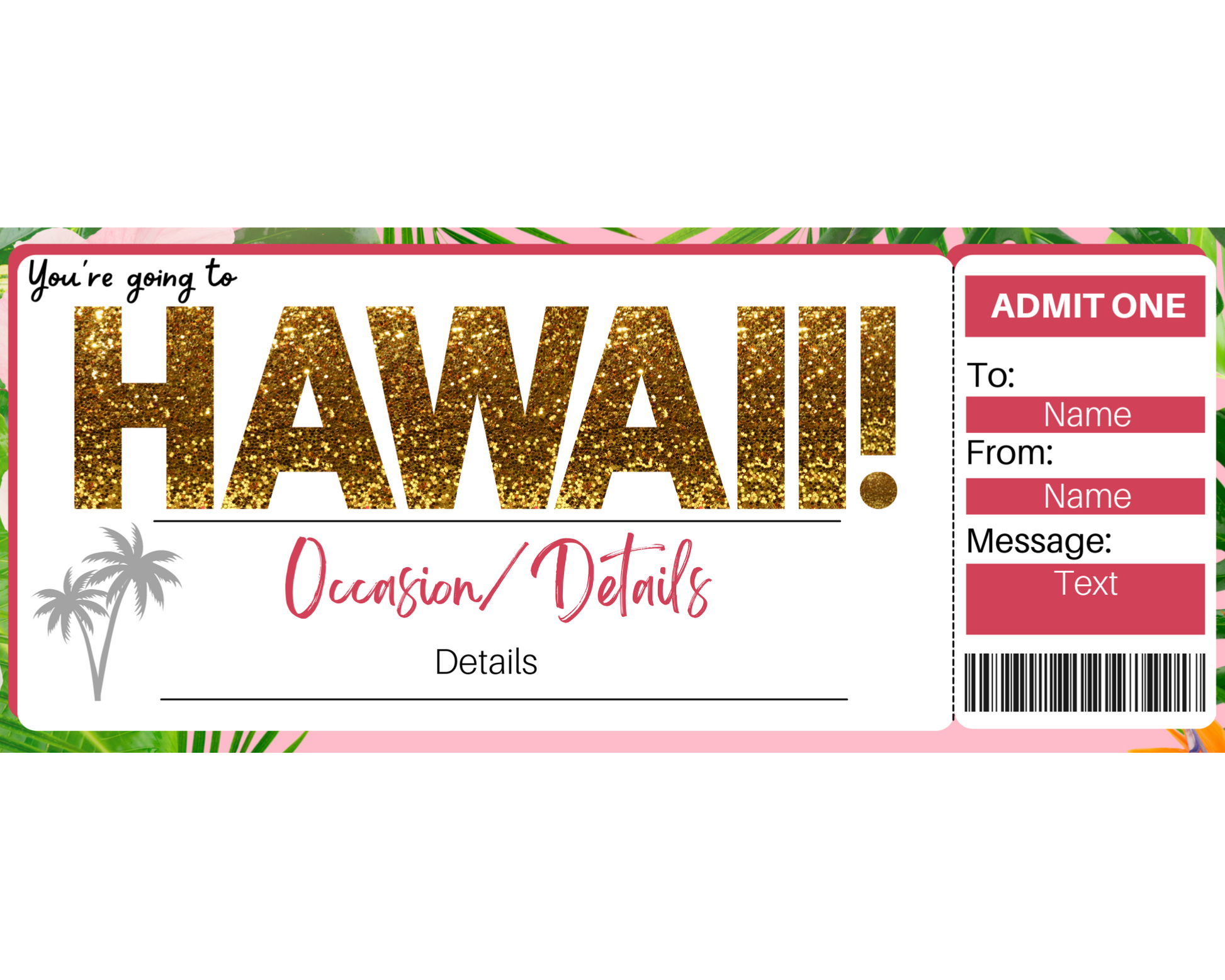 Hawaii boarding pass template. The perfect way to surprise someone with a trip to Hawaii for any occasion!
