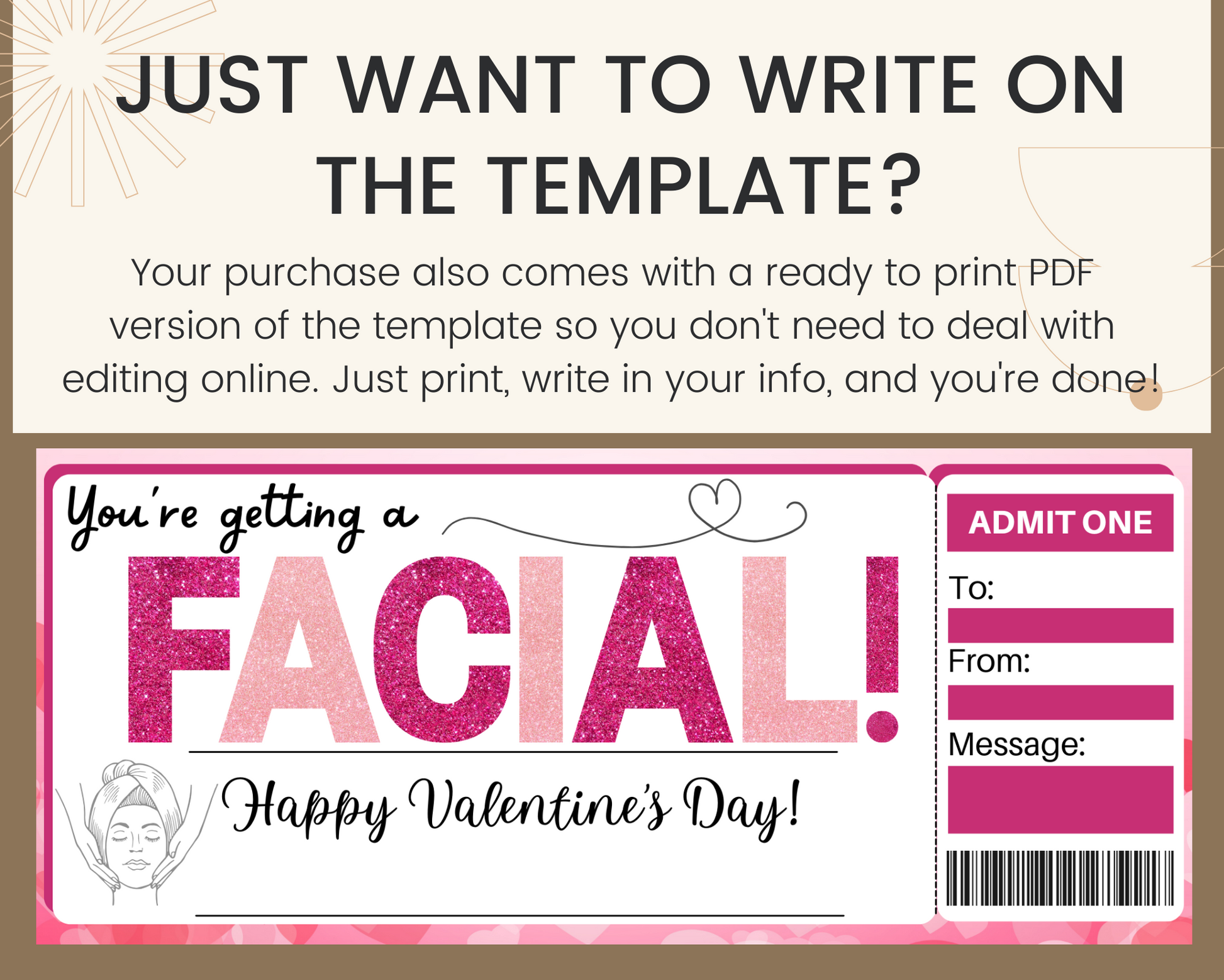 Valentine's Day facial gift certificate template. The perfect way to surprise someone with a facial for Valentine's Day!
